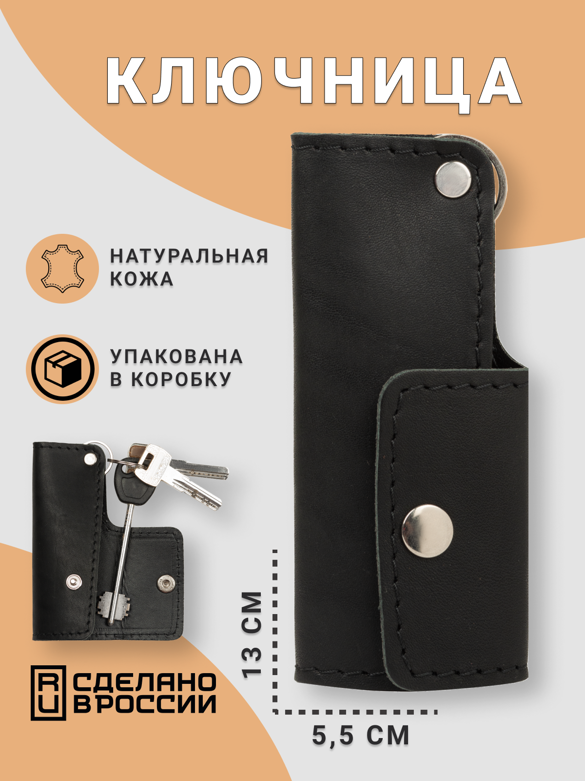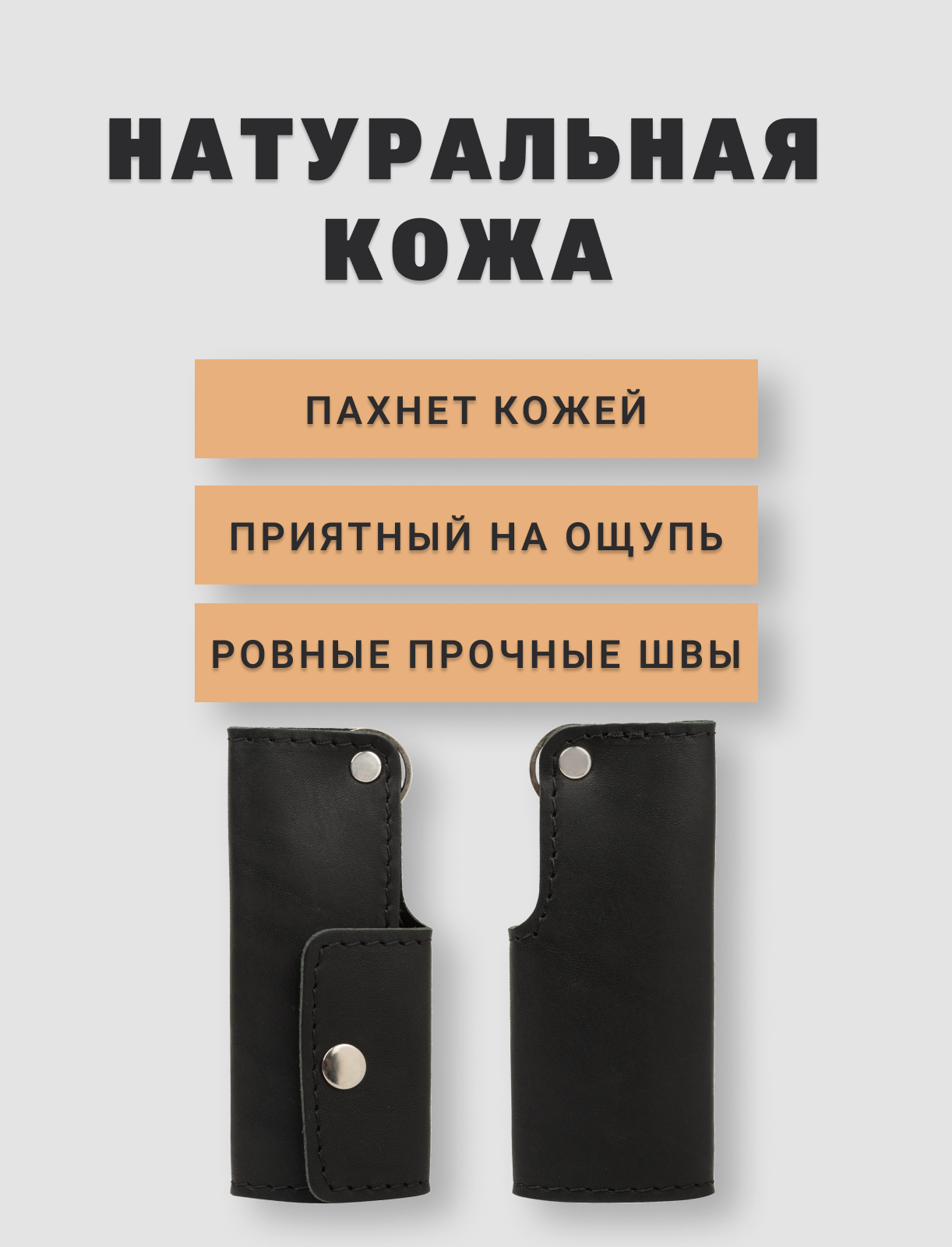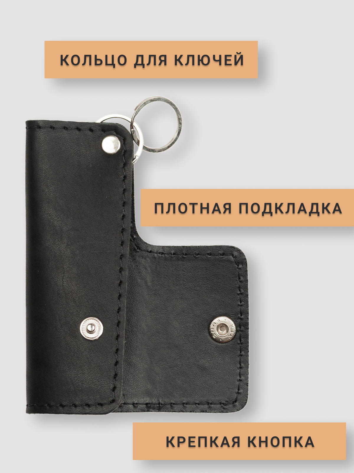 Ключница кожаная карманная чехол для ключей, черная зернистая