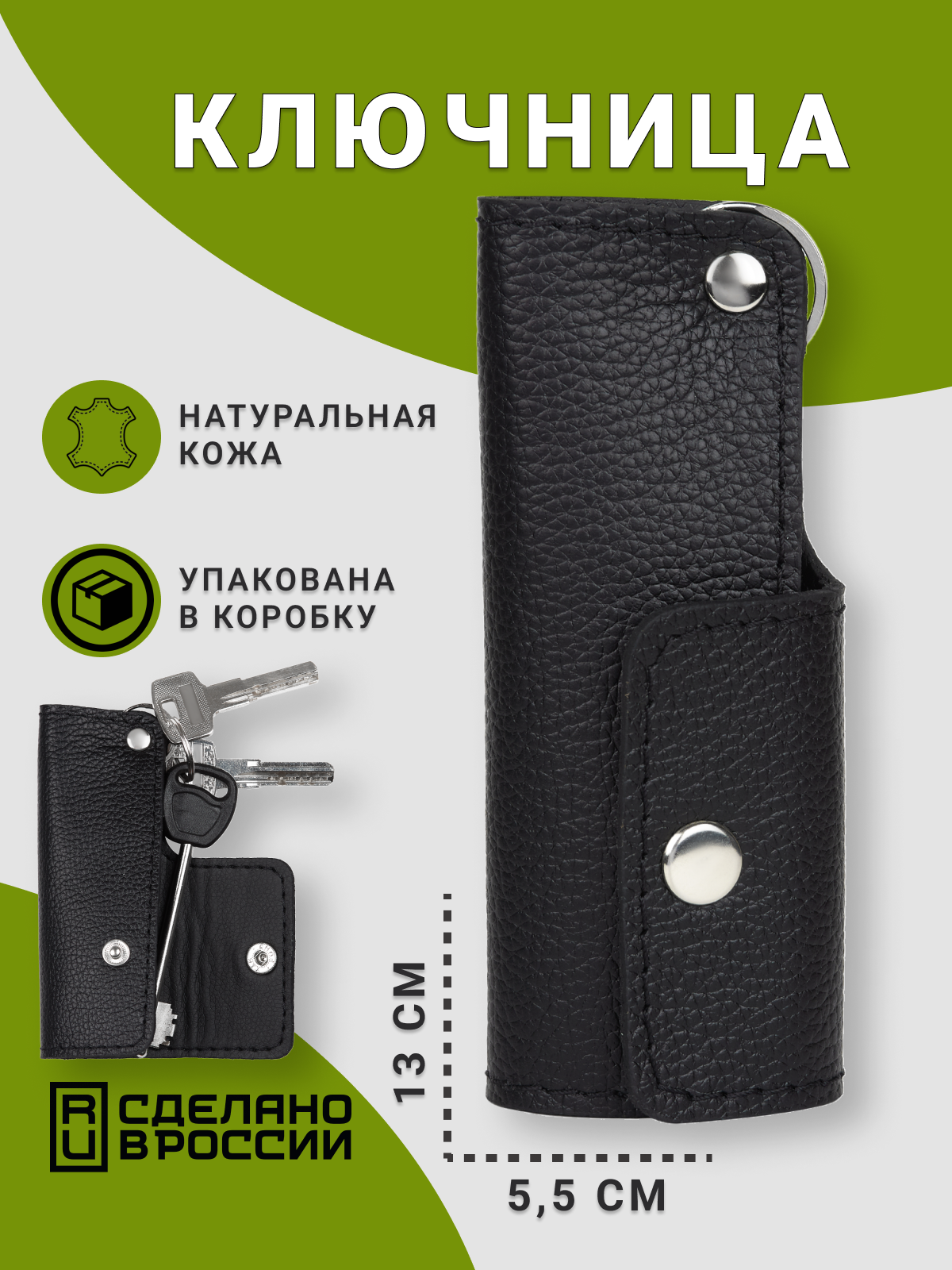 Купить Ключница кожаная карманная чехол для ключей, черная зернистая
