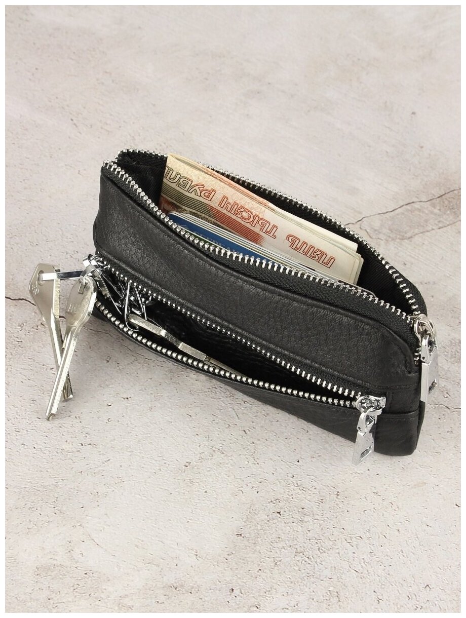 Ключница кошелек картхолдер Capsa из натуральной кожи с основным отделением и карманом на молнии, черный интересное: