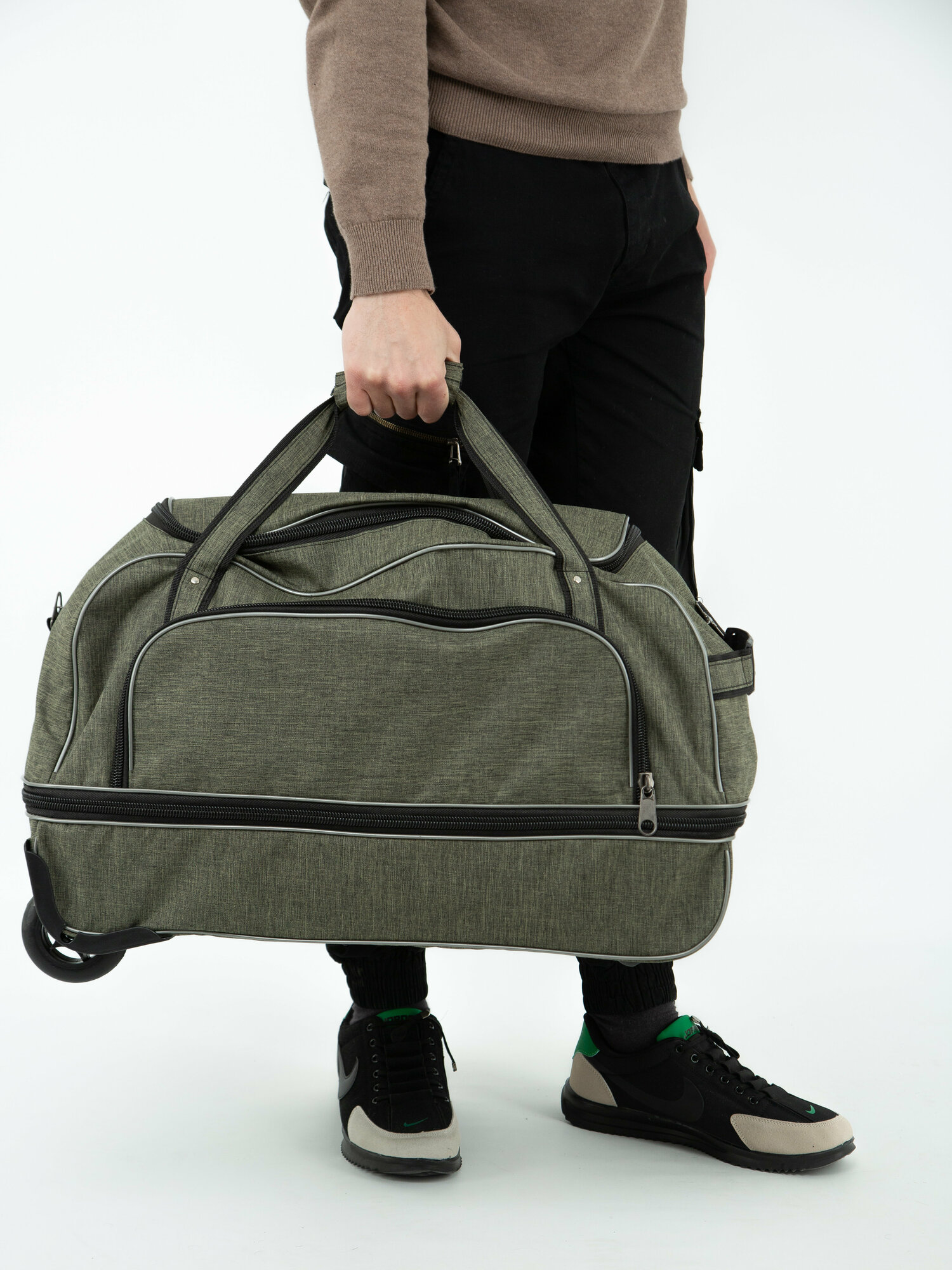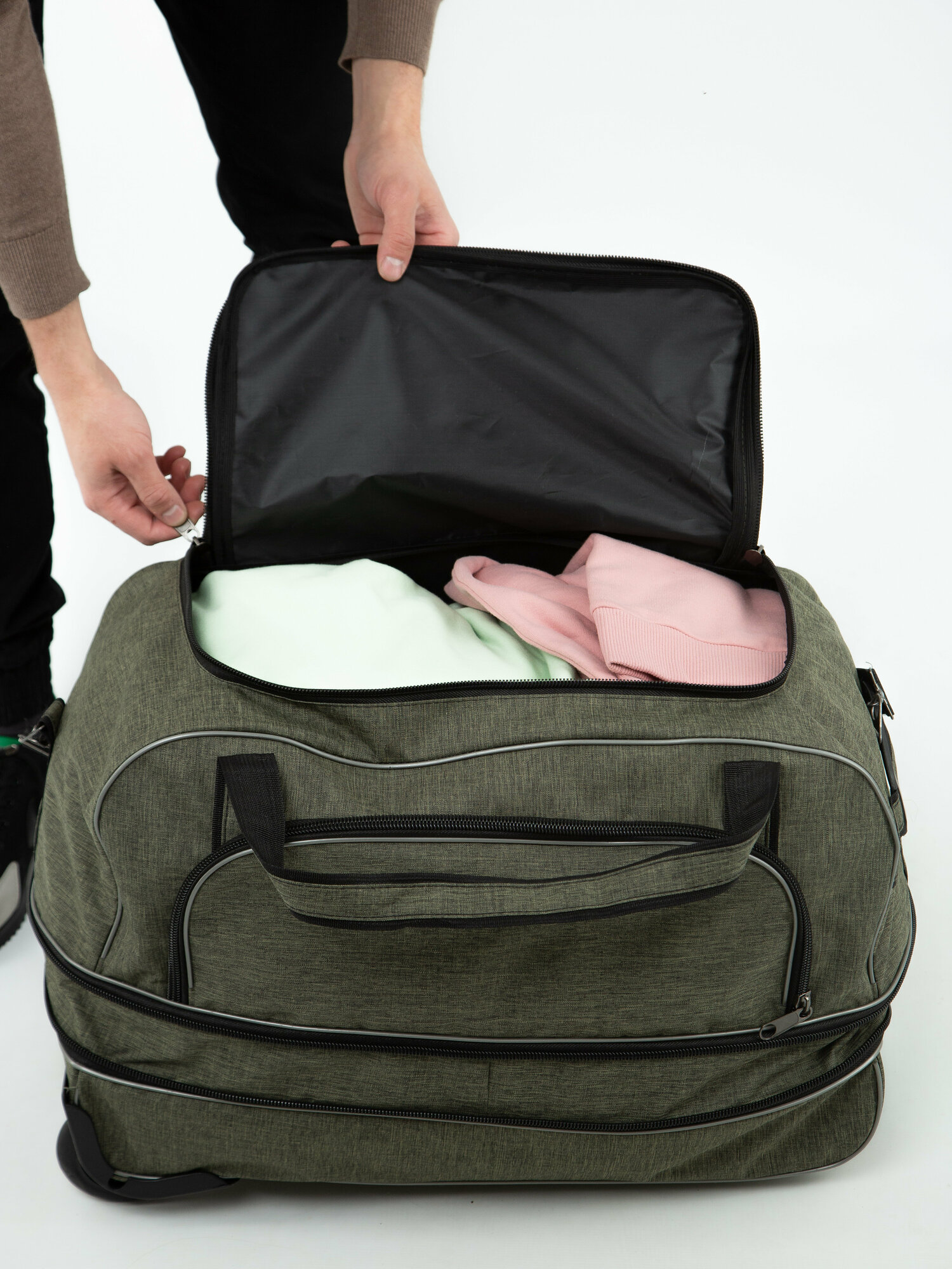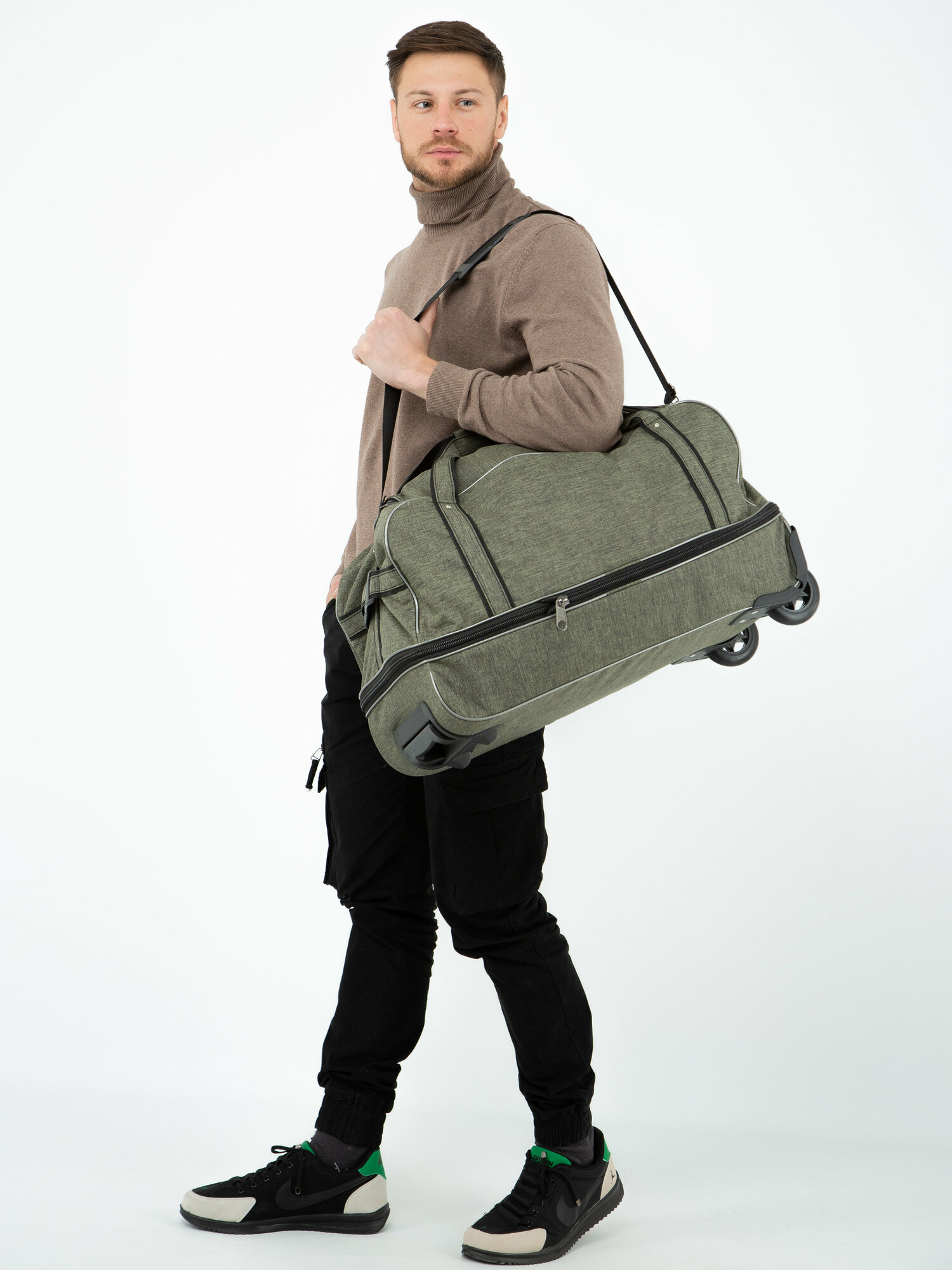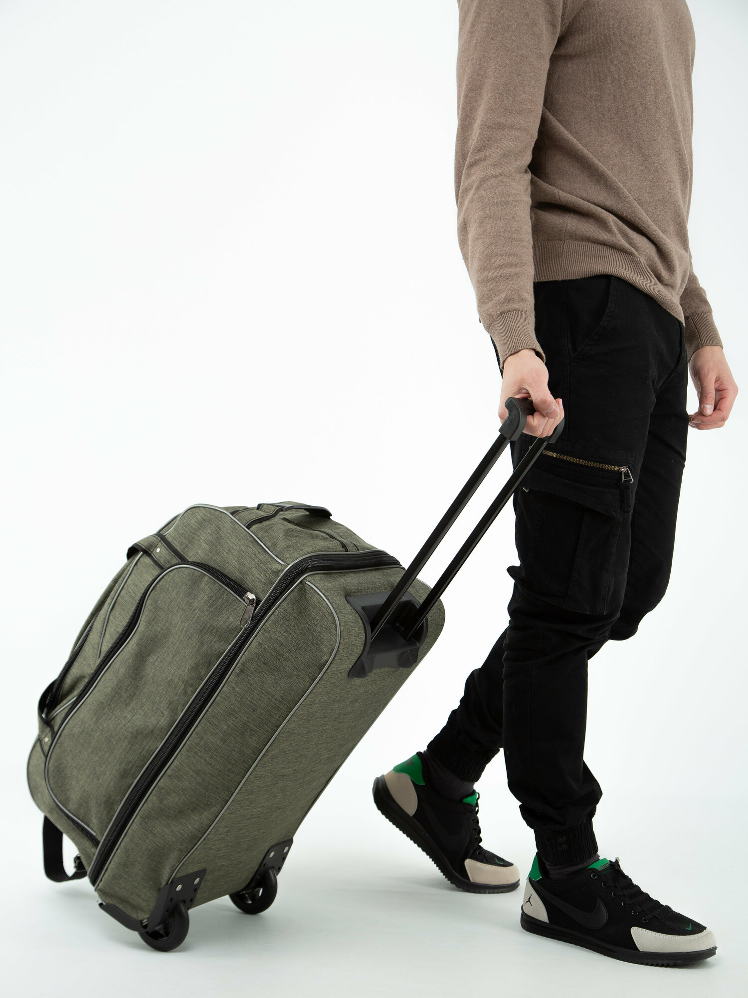 Купить Дорожная сумка на колесах зеленая M - 75 литров с выдвижной ручкой