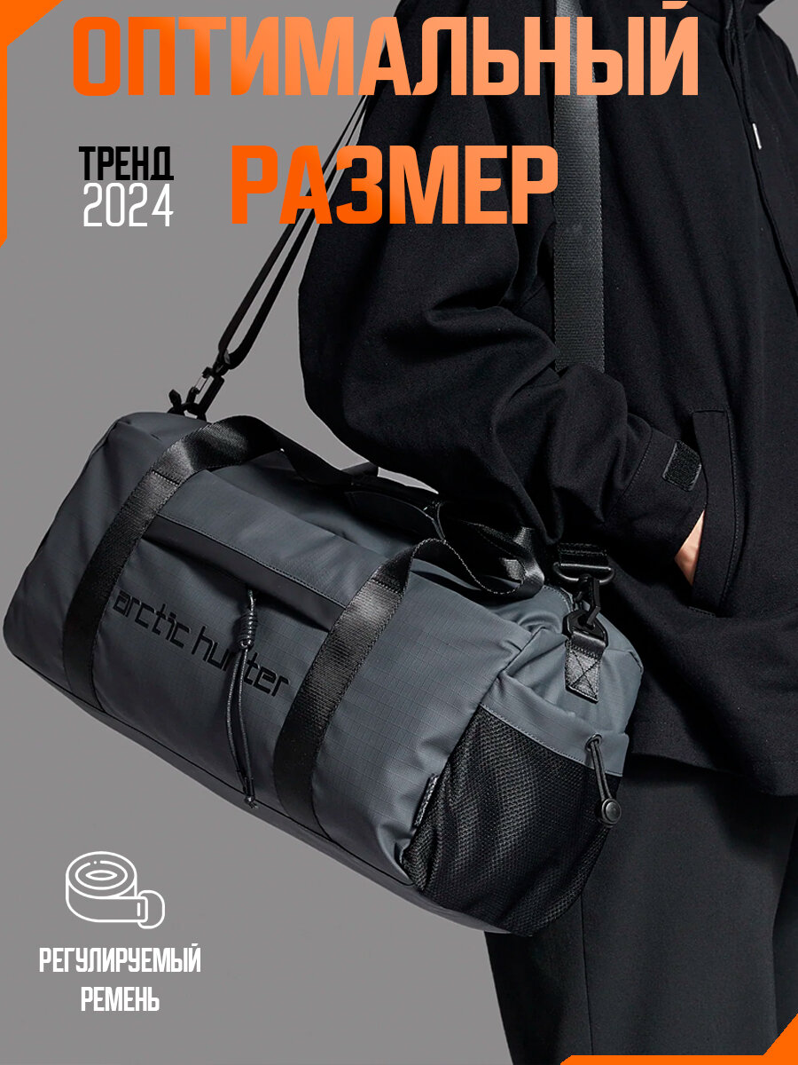 Сумка спортивная Arctic Hunter, 25 л, 16х32х48.5 см, ручная кладь, серый