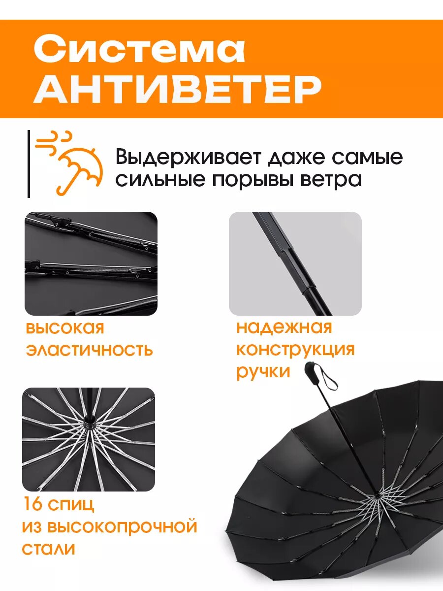 Зонт автомат антиветер усиленный и большой 16 спиц интересное: