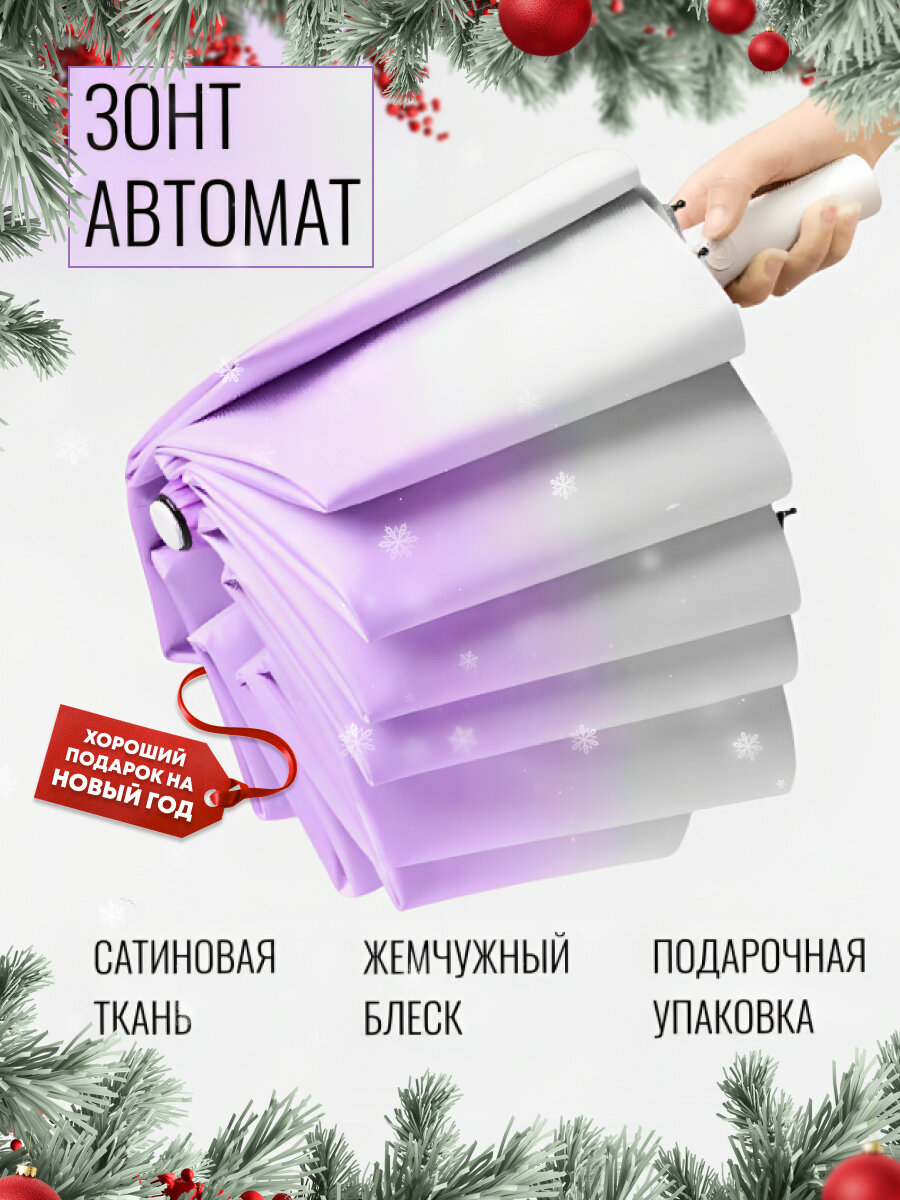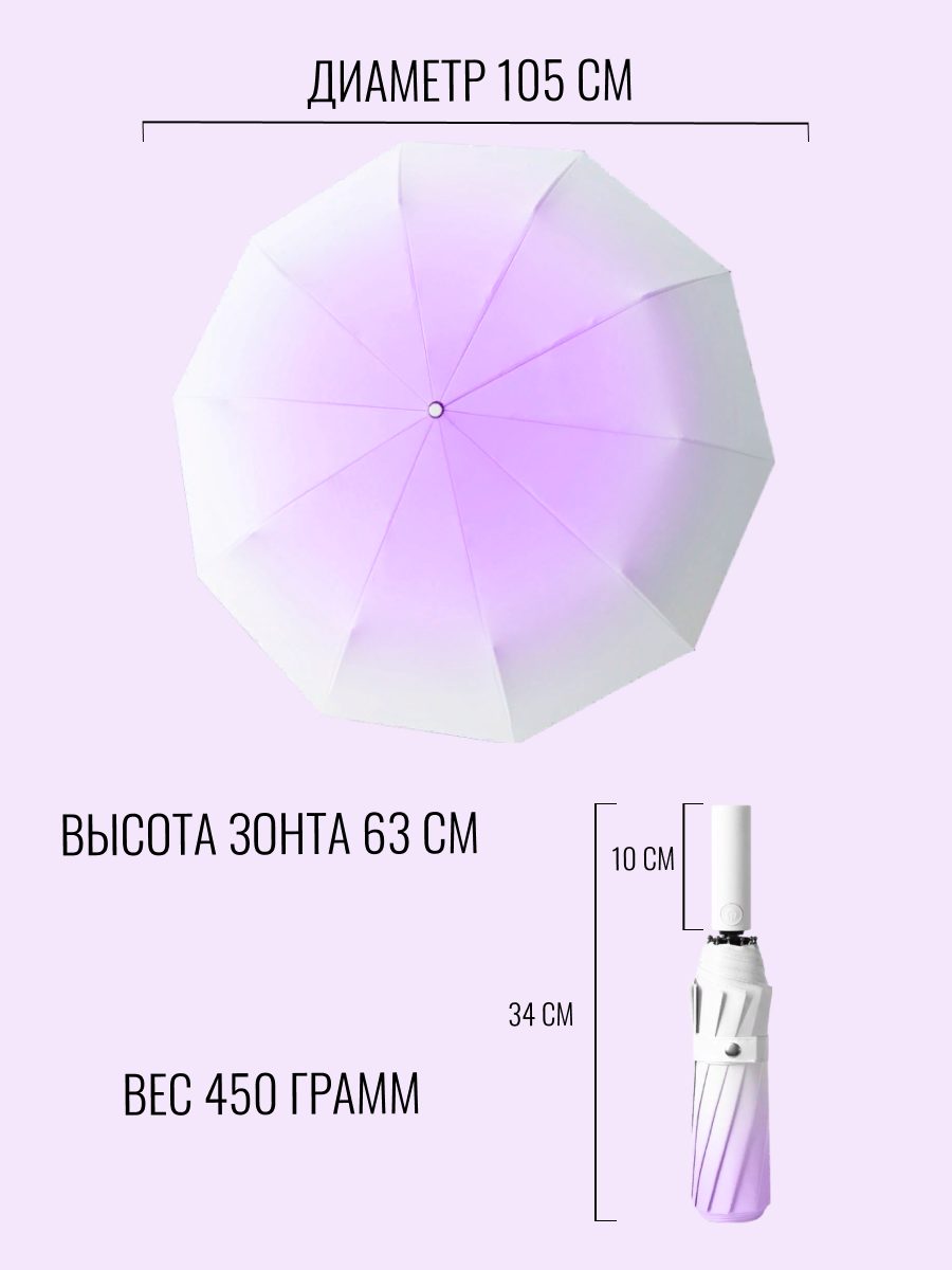 Зонт автомат женский "Белое небо", фиолетовый интересное: