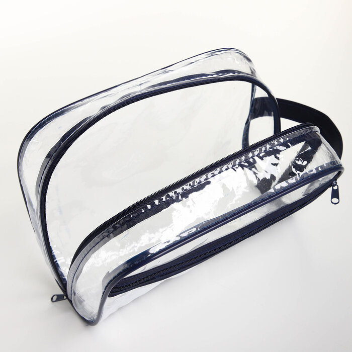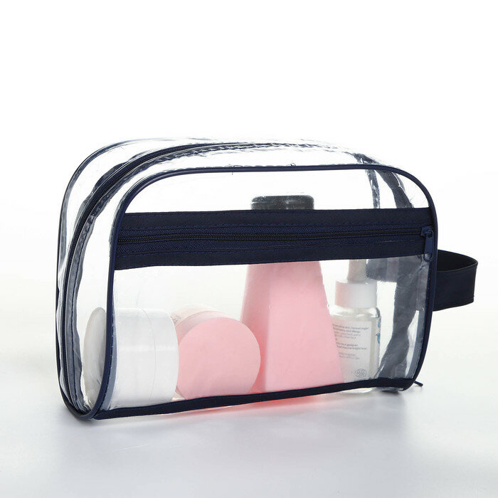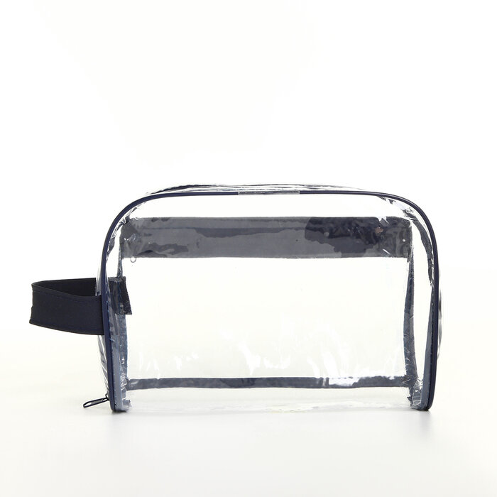 Купить Косметичка на молнии, наружный карман, с ручкой, цвет синий/прозрачный