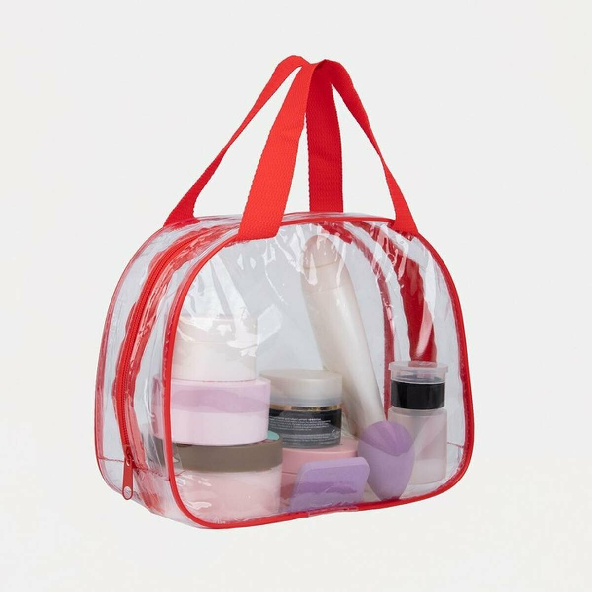 Купить Косметичка на молнии, цвет прозрачный/красный