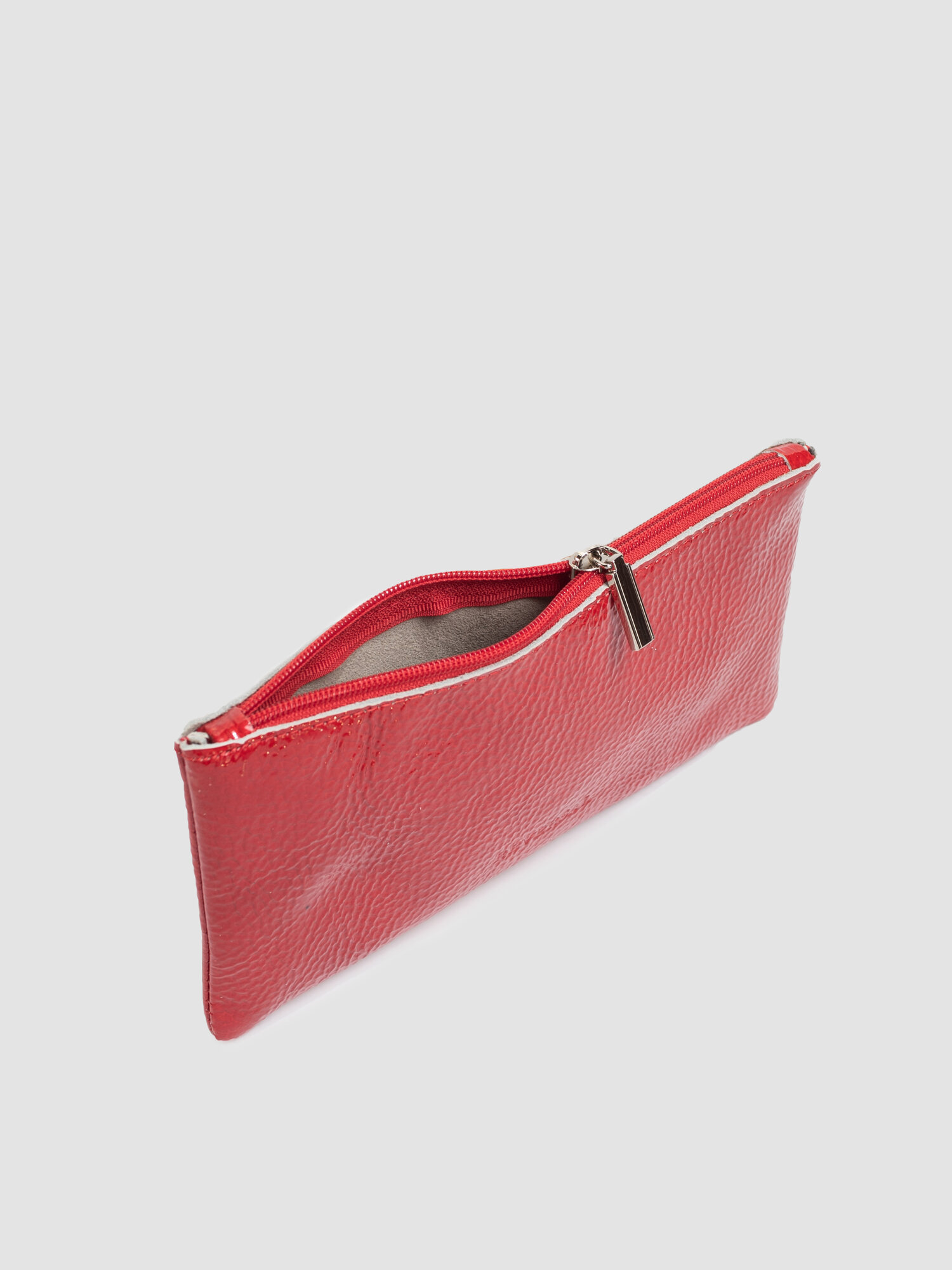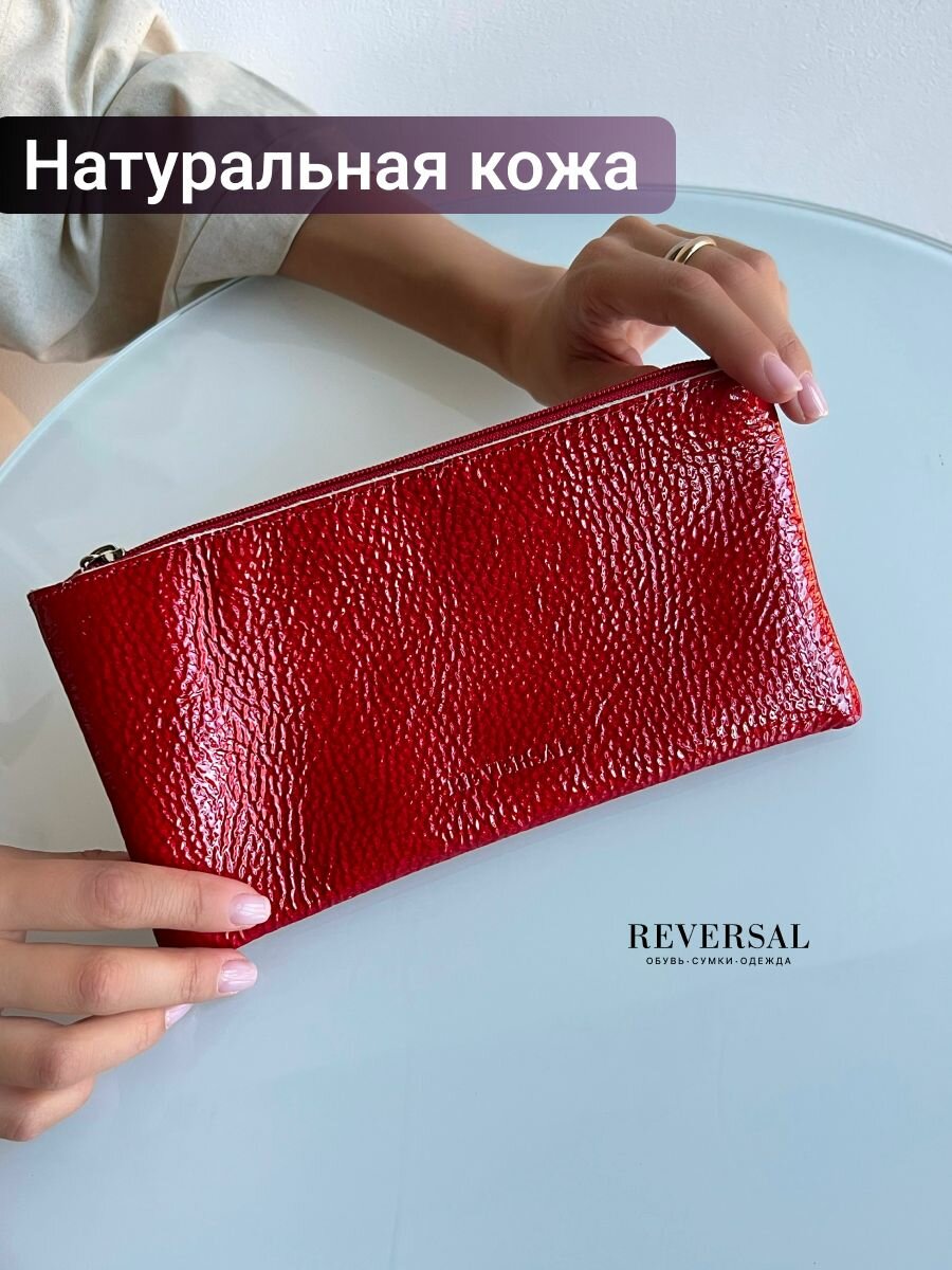 Купить Косметичка натуральная кожа на молнии плоская , Reversal , 8856R_Красный-латекс