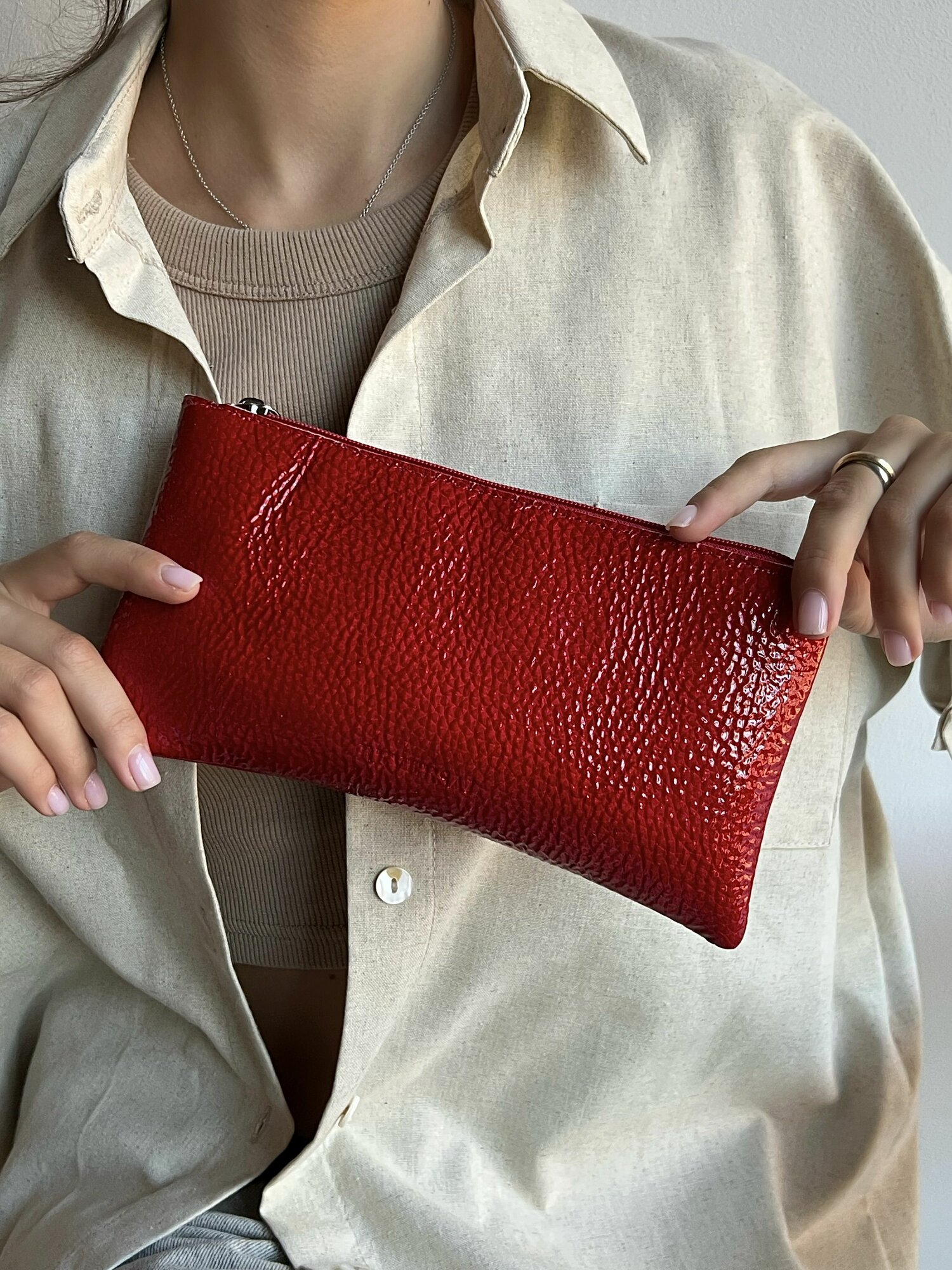 Косметичка натуральная кожа на молнии плоская , Reversal , 8856R_Красный-латекс интересное: