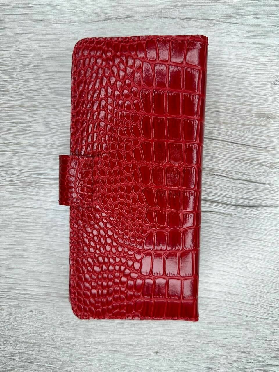 Кошелек женский из натуральной премиум кожи лонгер мужской красный кайман унисекс.
