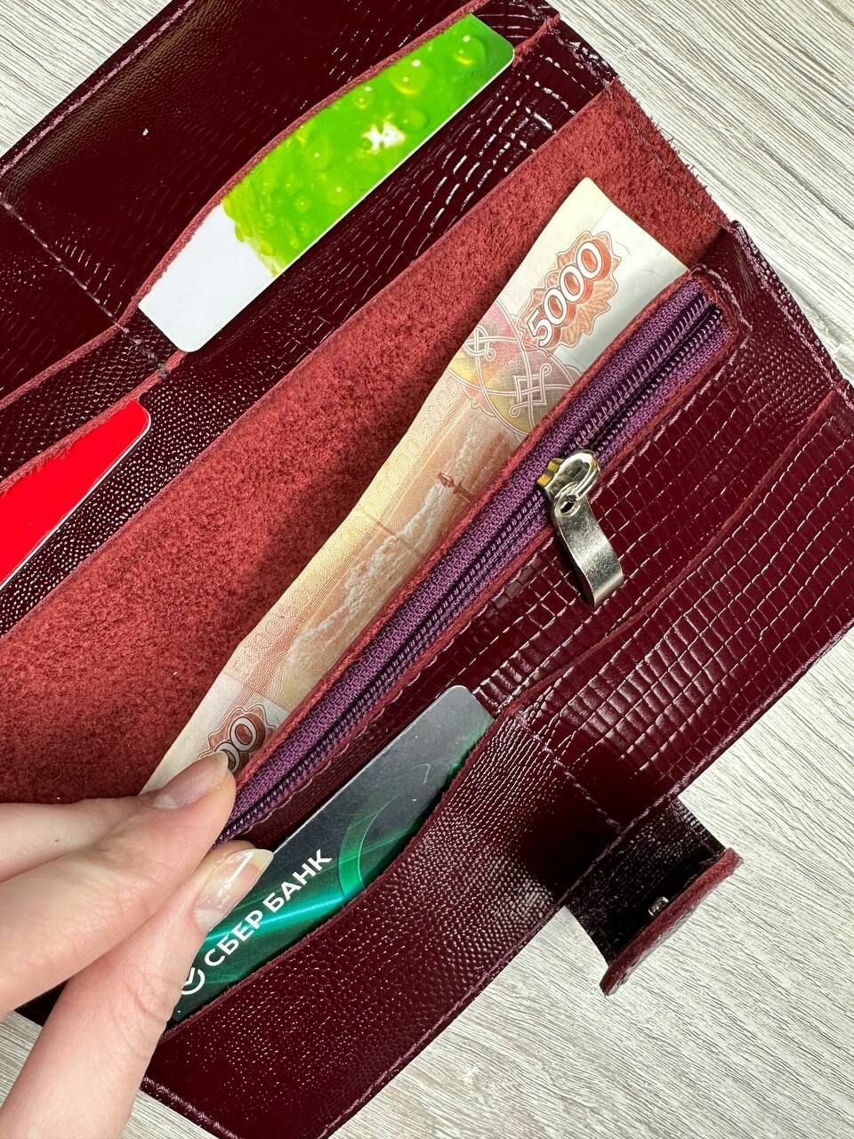 СохранитьКошелек женский из натуральной премиум кожи лонгер мужской бордовый ящер унисекс интересное: