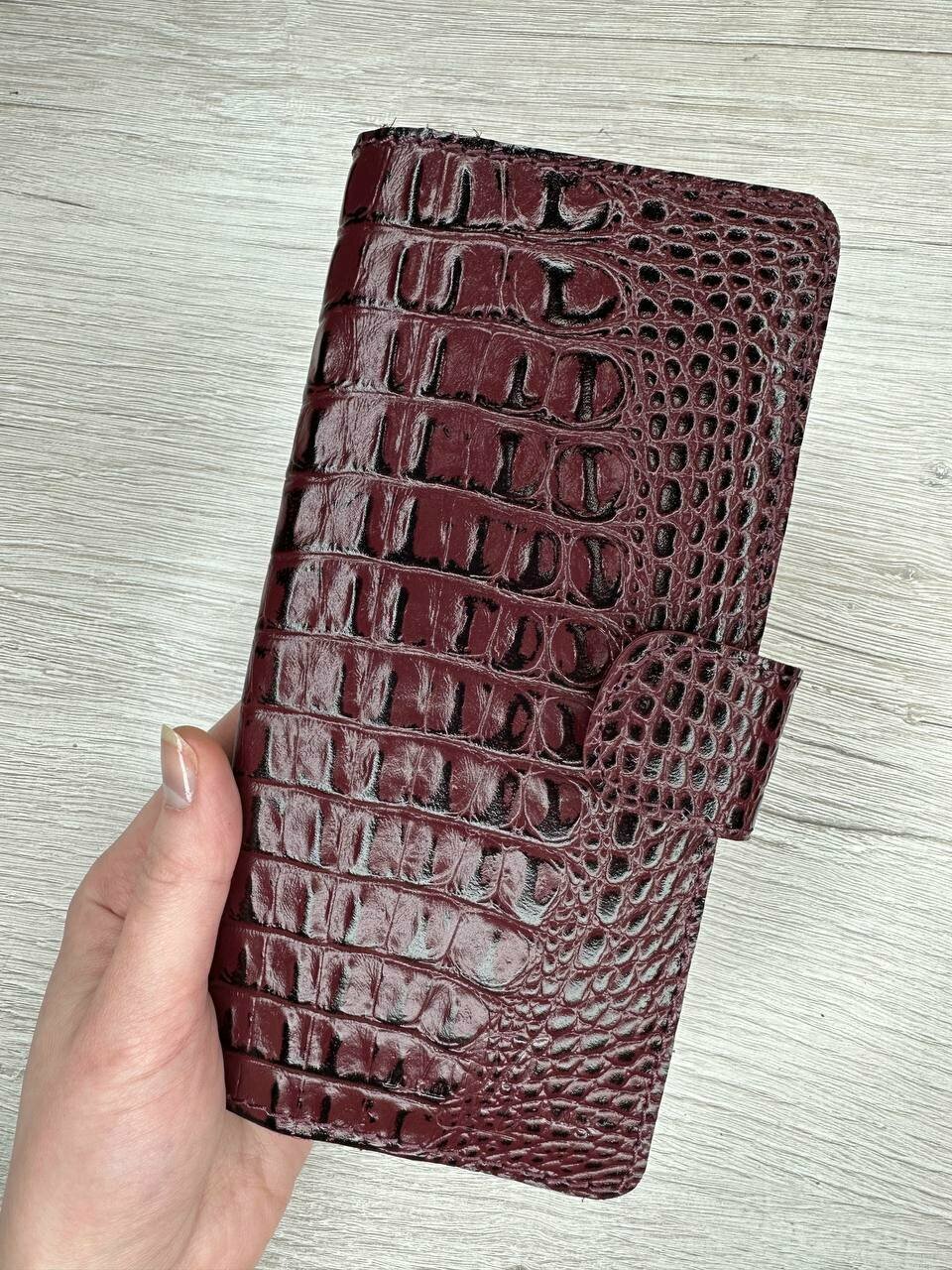 Кошелек женский из натуральной премиум кожи лонгер мужской бордовый ящер унисекс