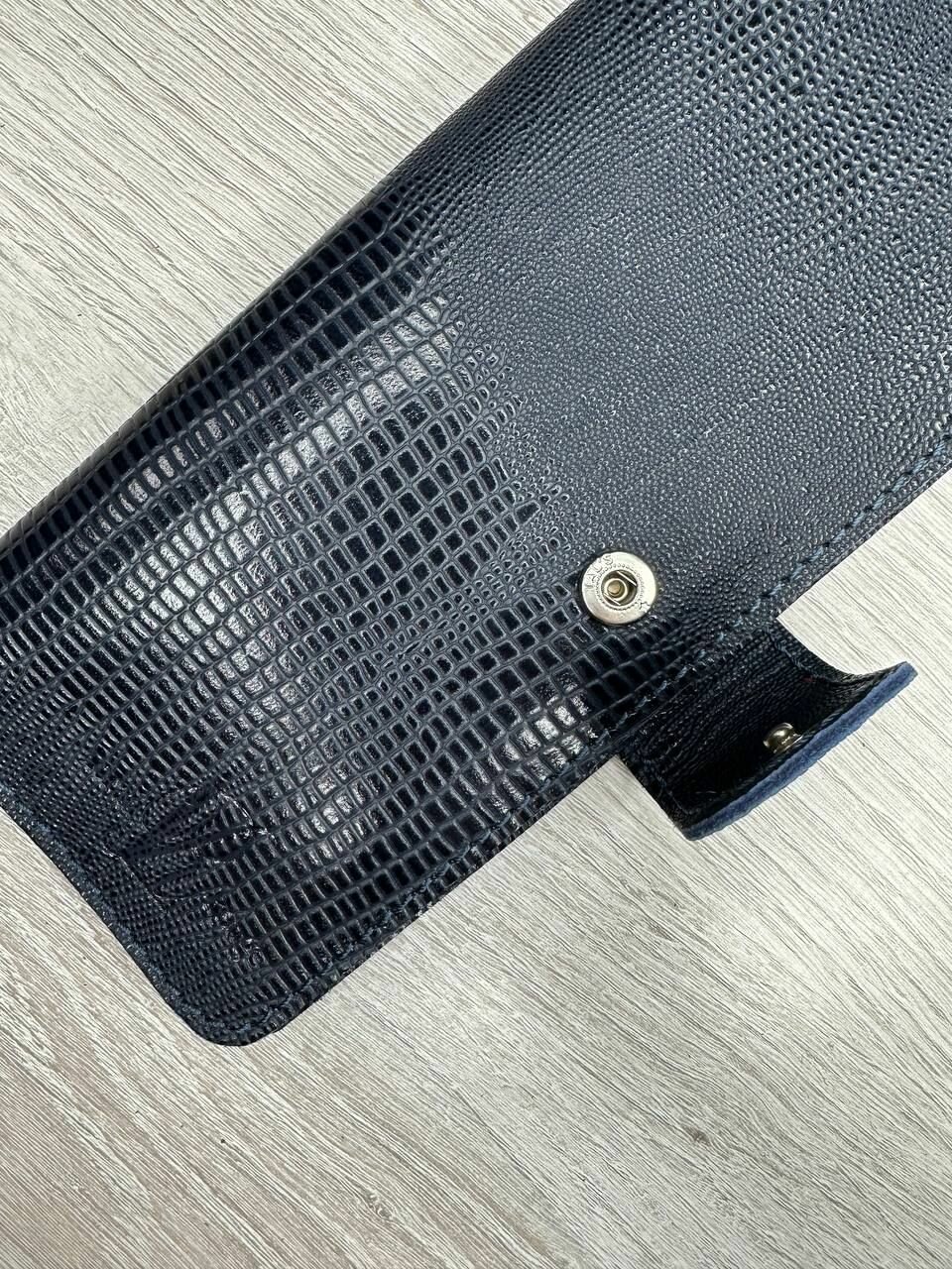 Кошелек женский из натуральной премиум кожи лонгер мужской темно-синий кайман унисекс.