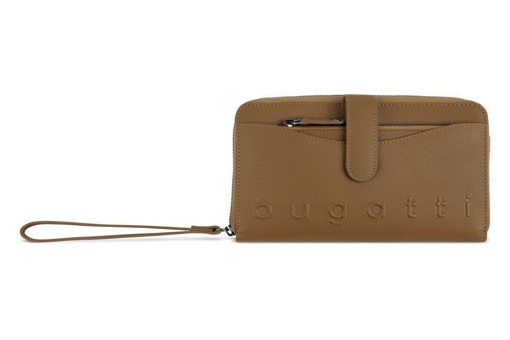 Кошелёк женский BUGATTI Banda, с защитой данных RFID, коричневый, кожа козы/полиэстер, 18,5х2х10 см