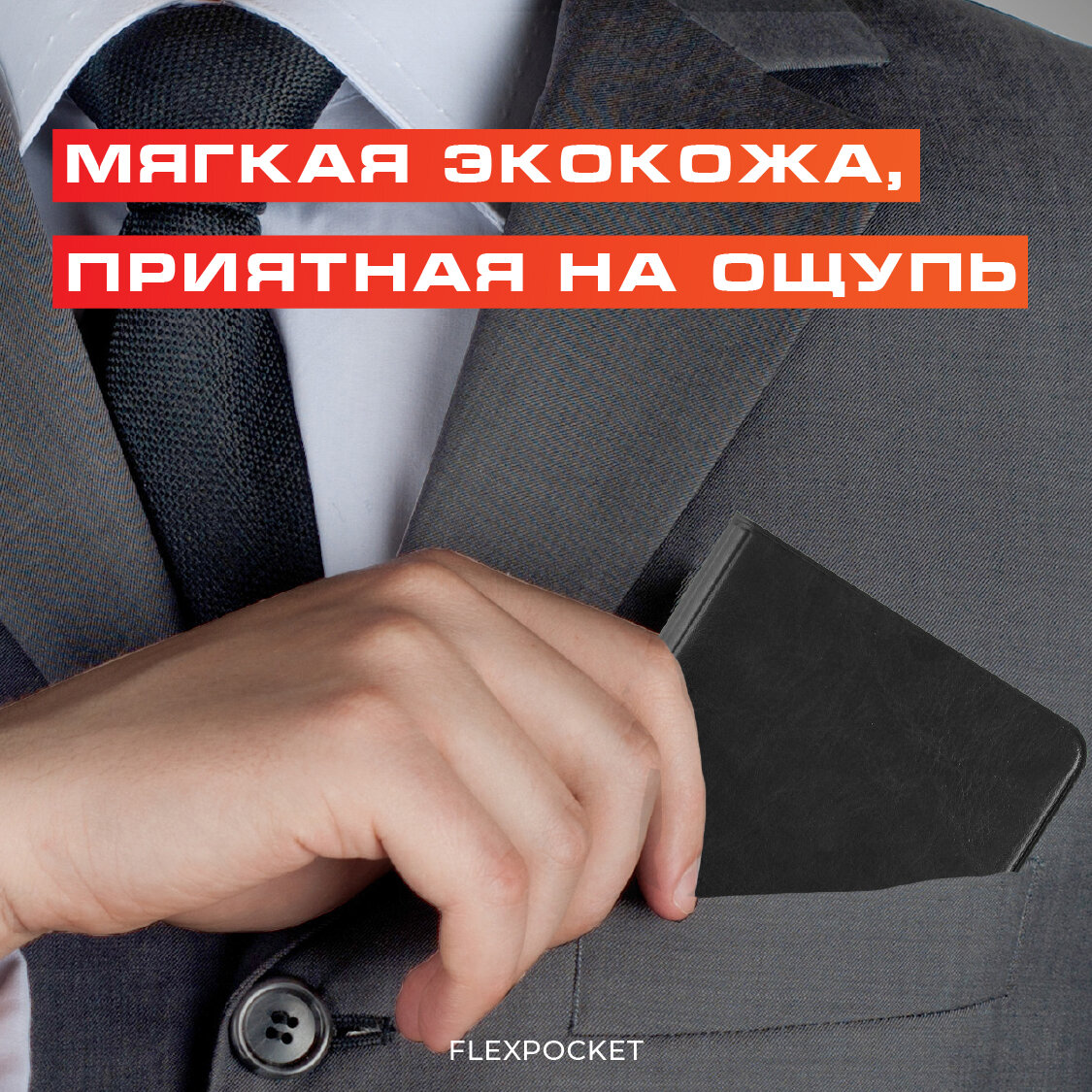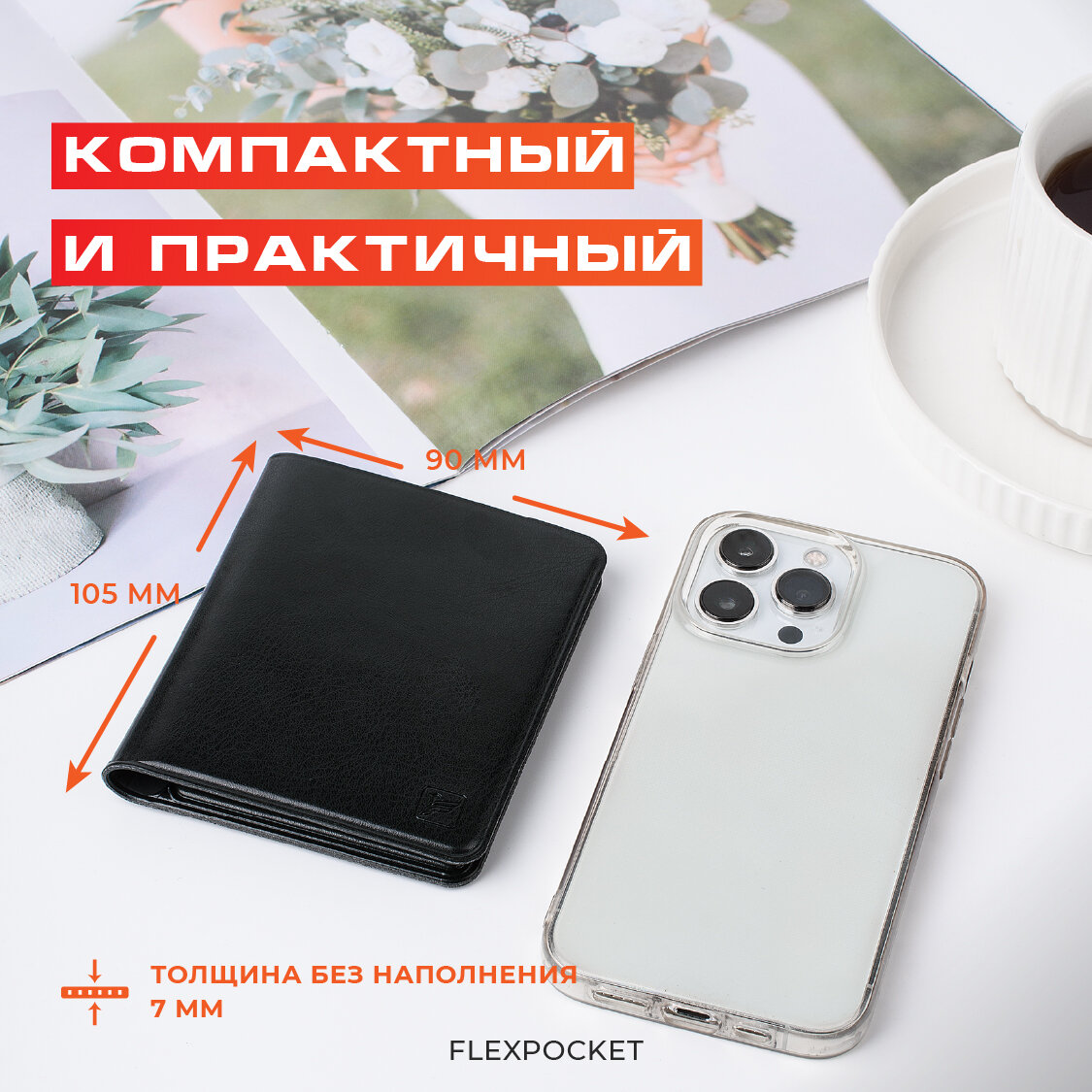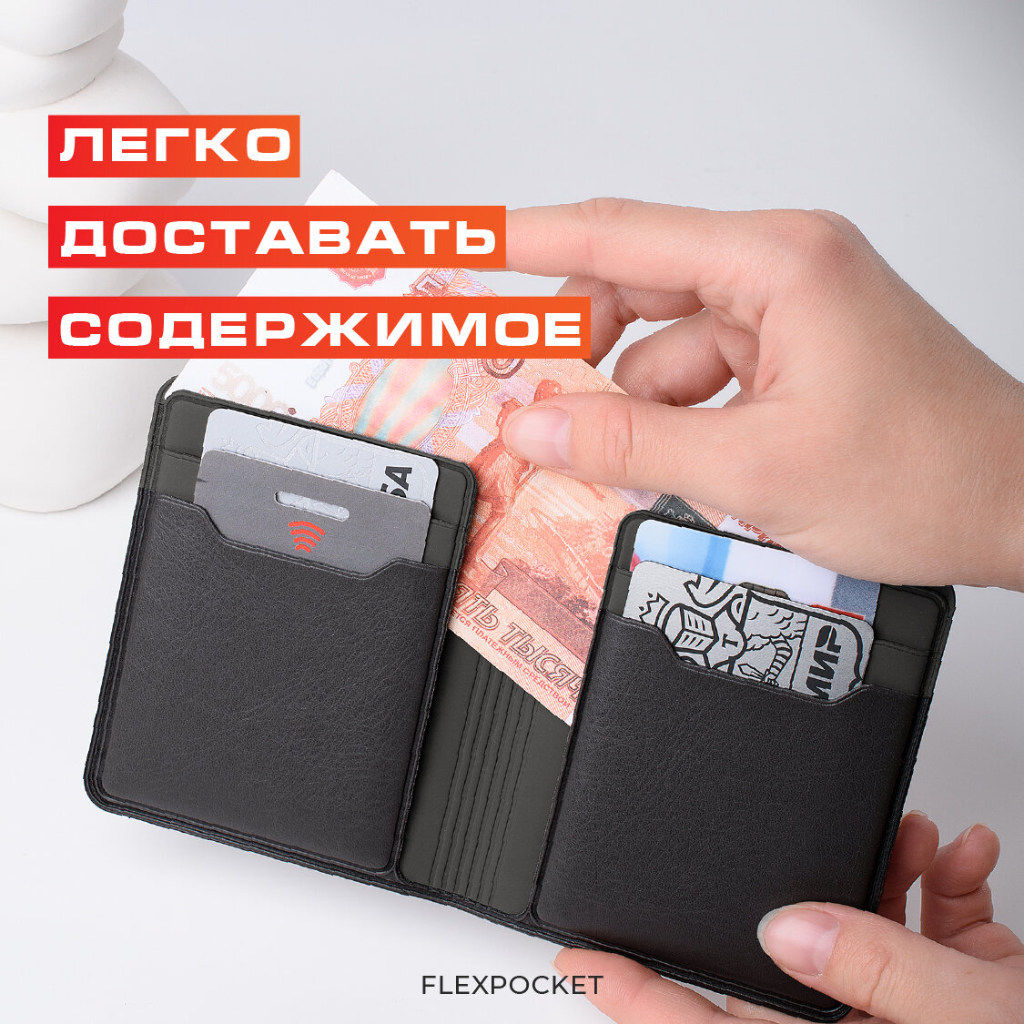 Картхолдер Flexpocket на 4 карты и 2 дополнительными карманами, визитница мужская или женская, кредитница для карт из экокожи интересное: