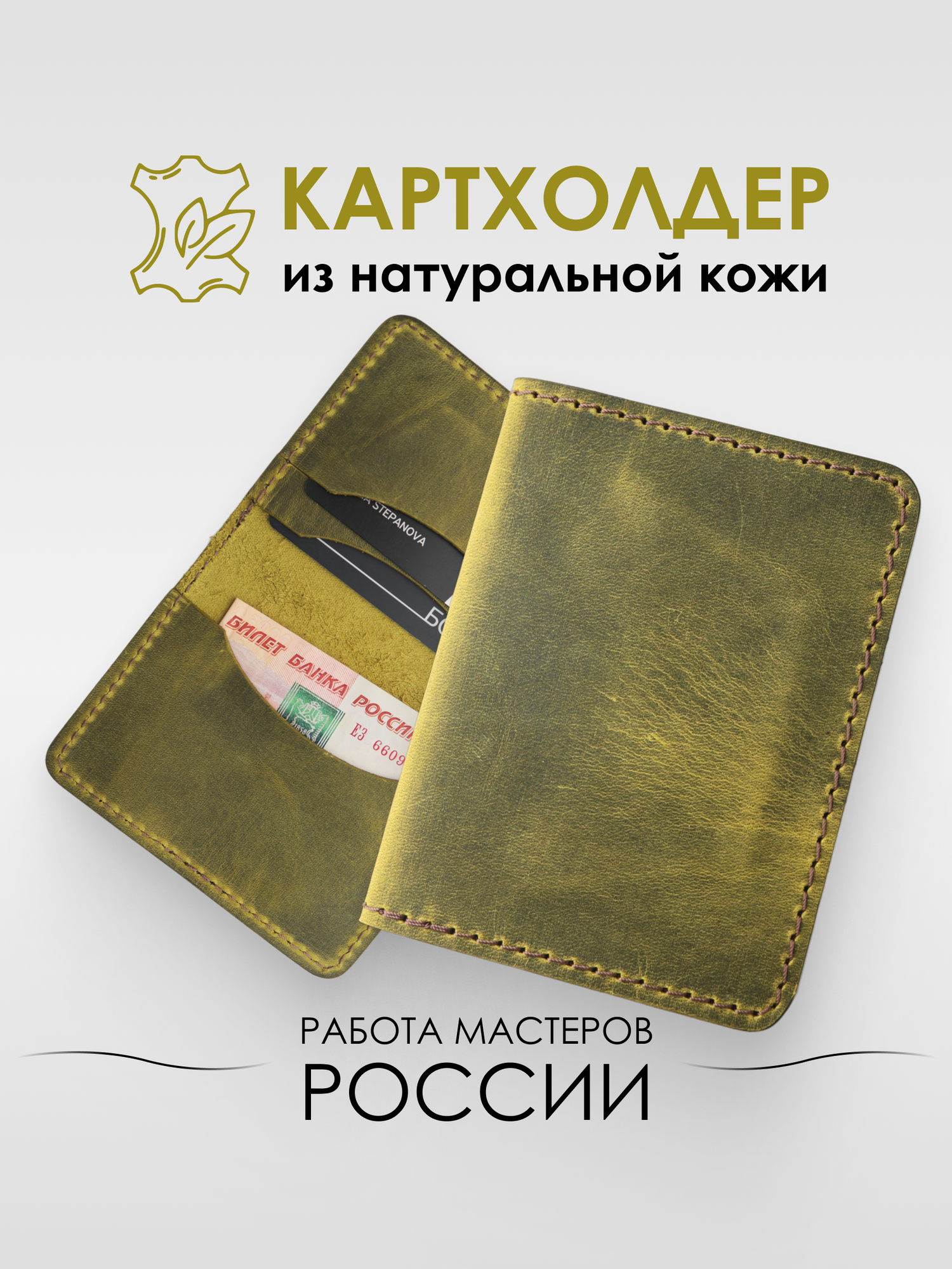 Кредитница, зеленая картхолдер книжка из натуральной кожи интересное: