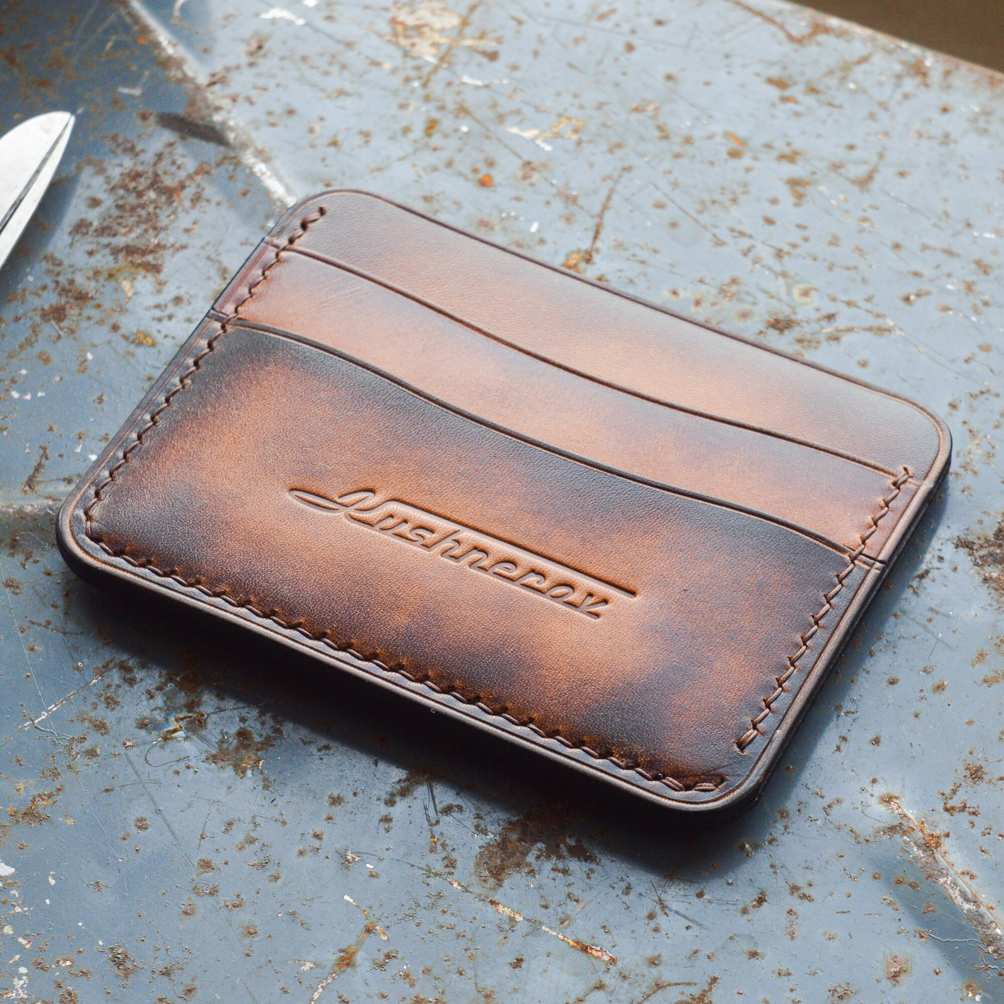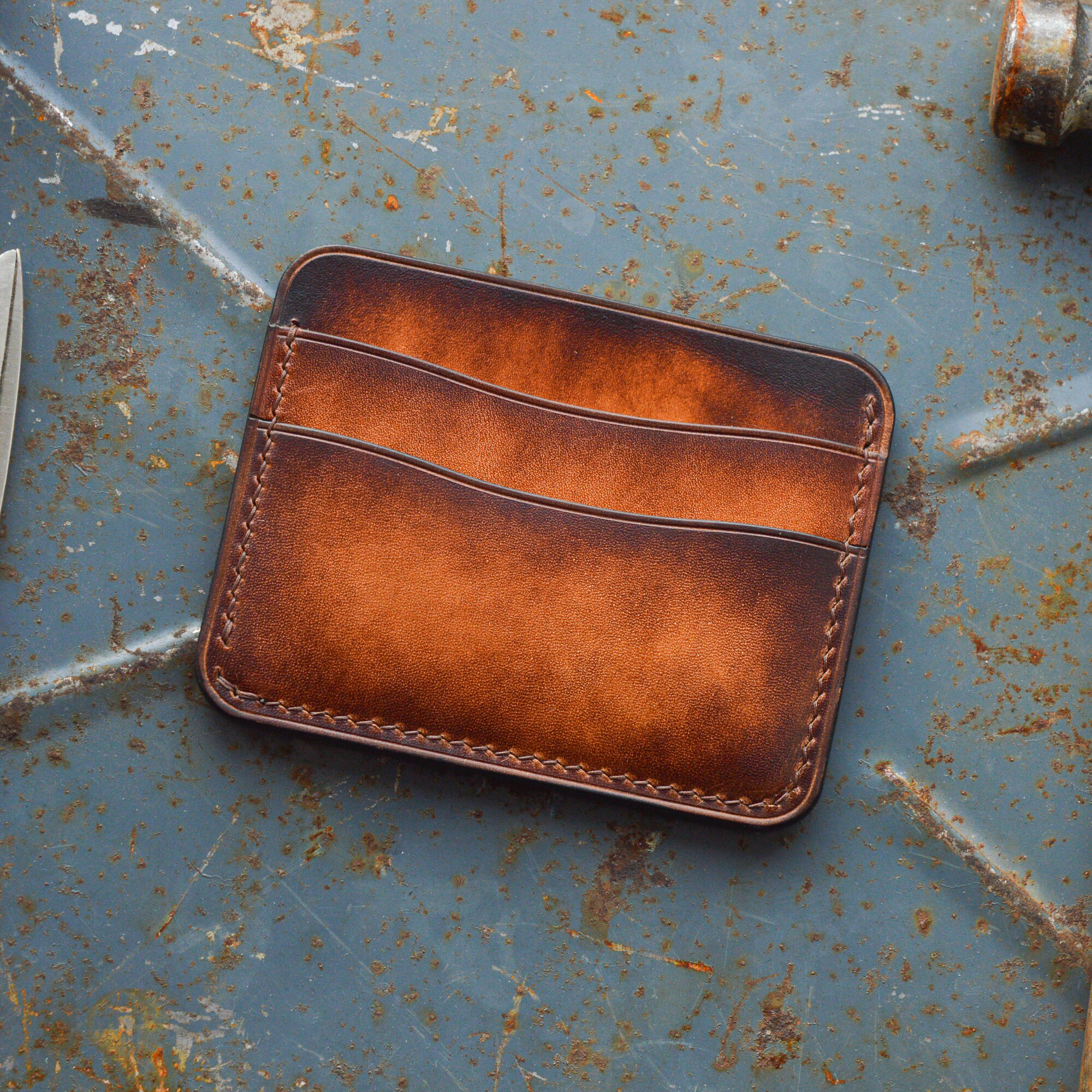 Купить Картхолдер из натуральной кожи ручной работы Янтарь / Кожаный мини кошелек для мужчин и женщин. Цвет коричневый