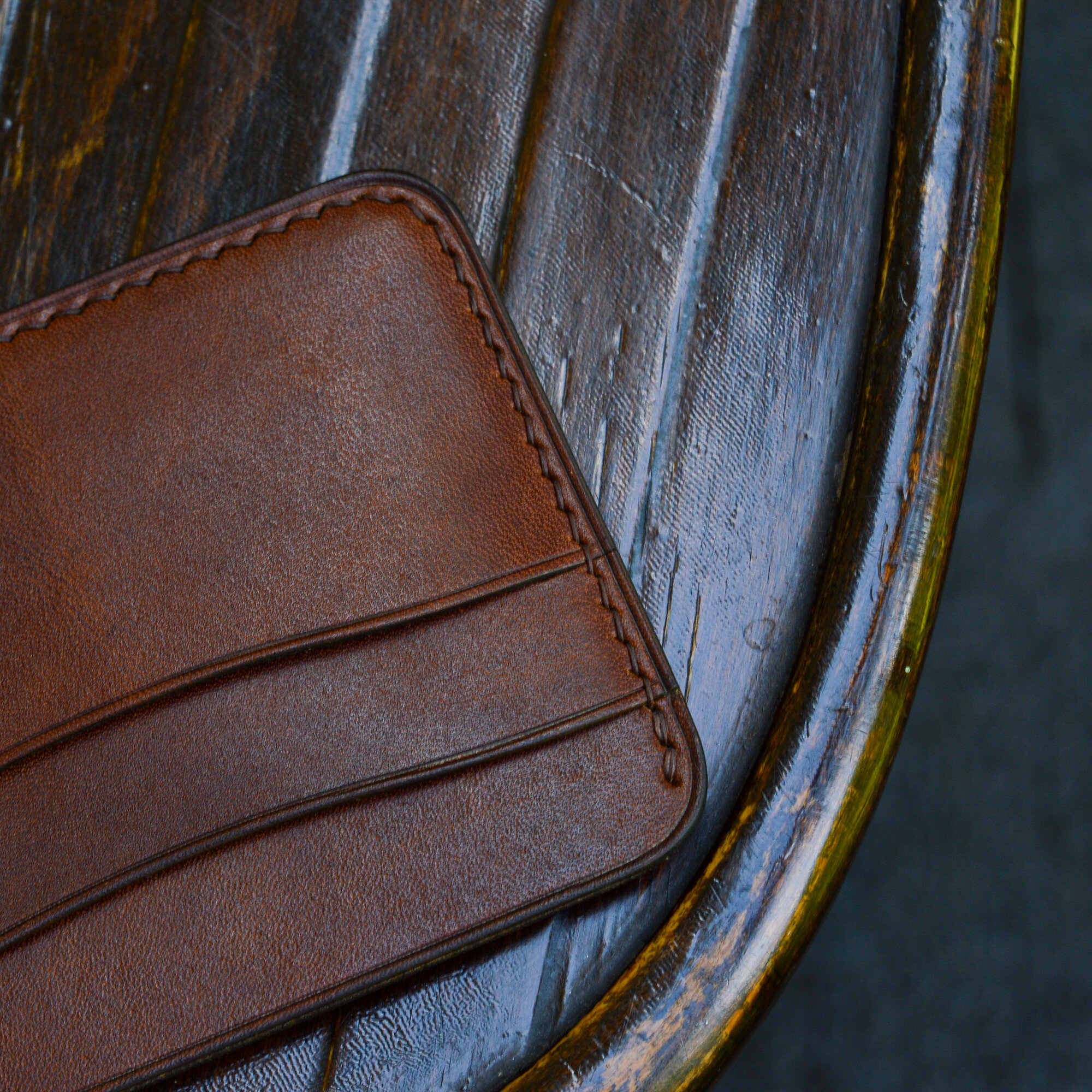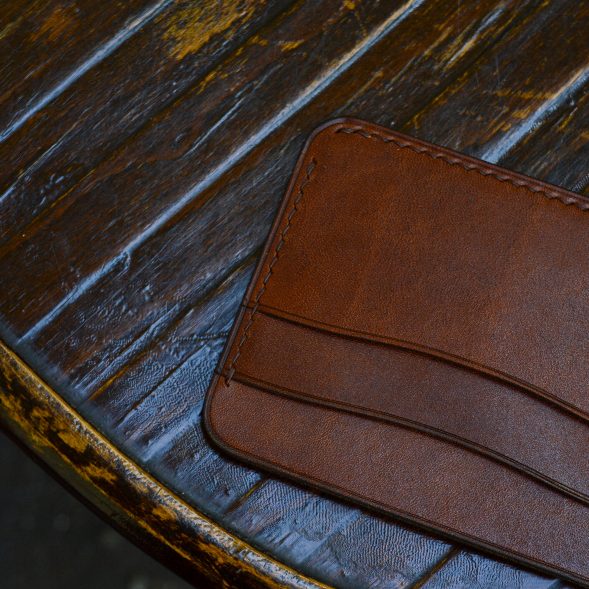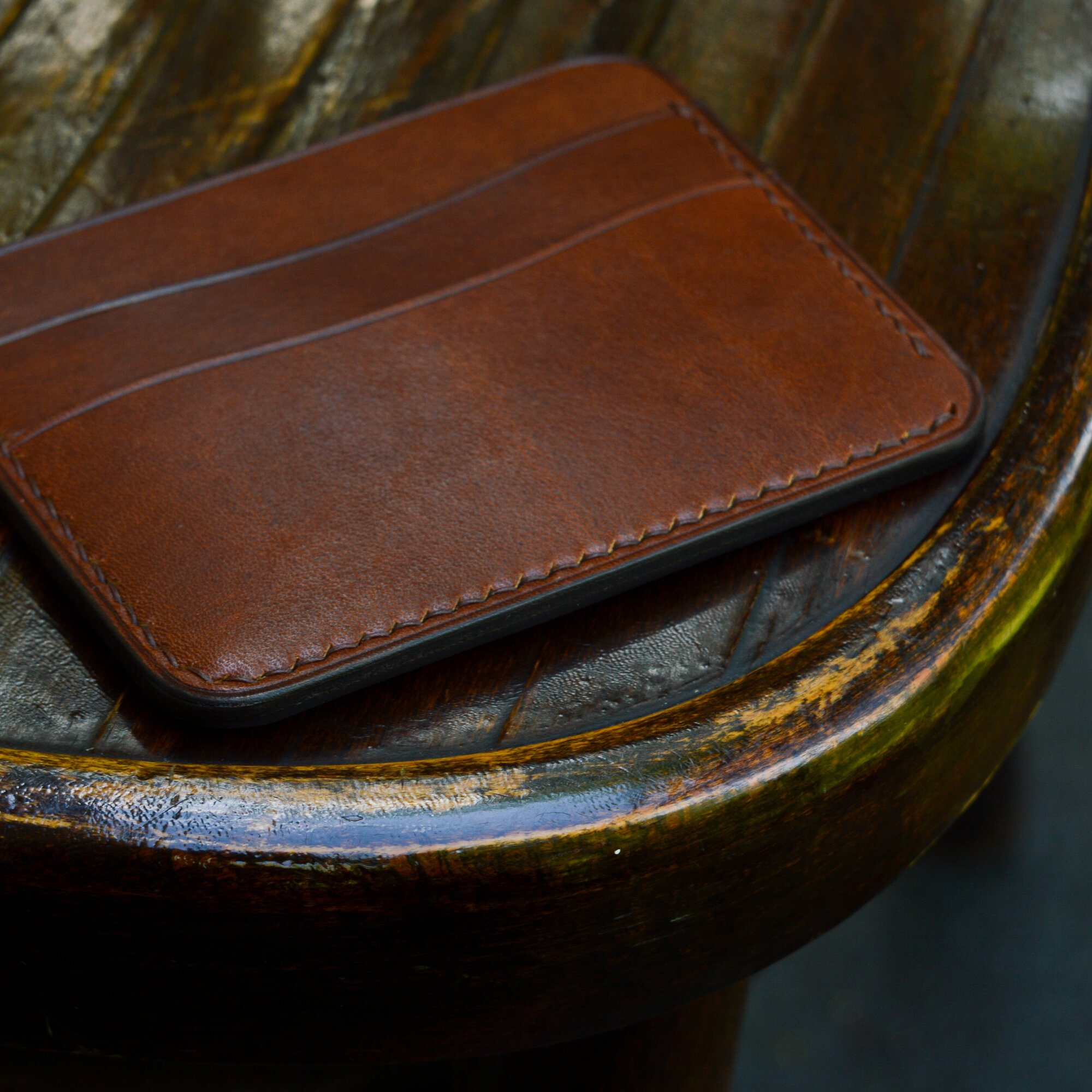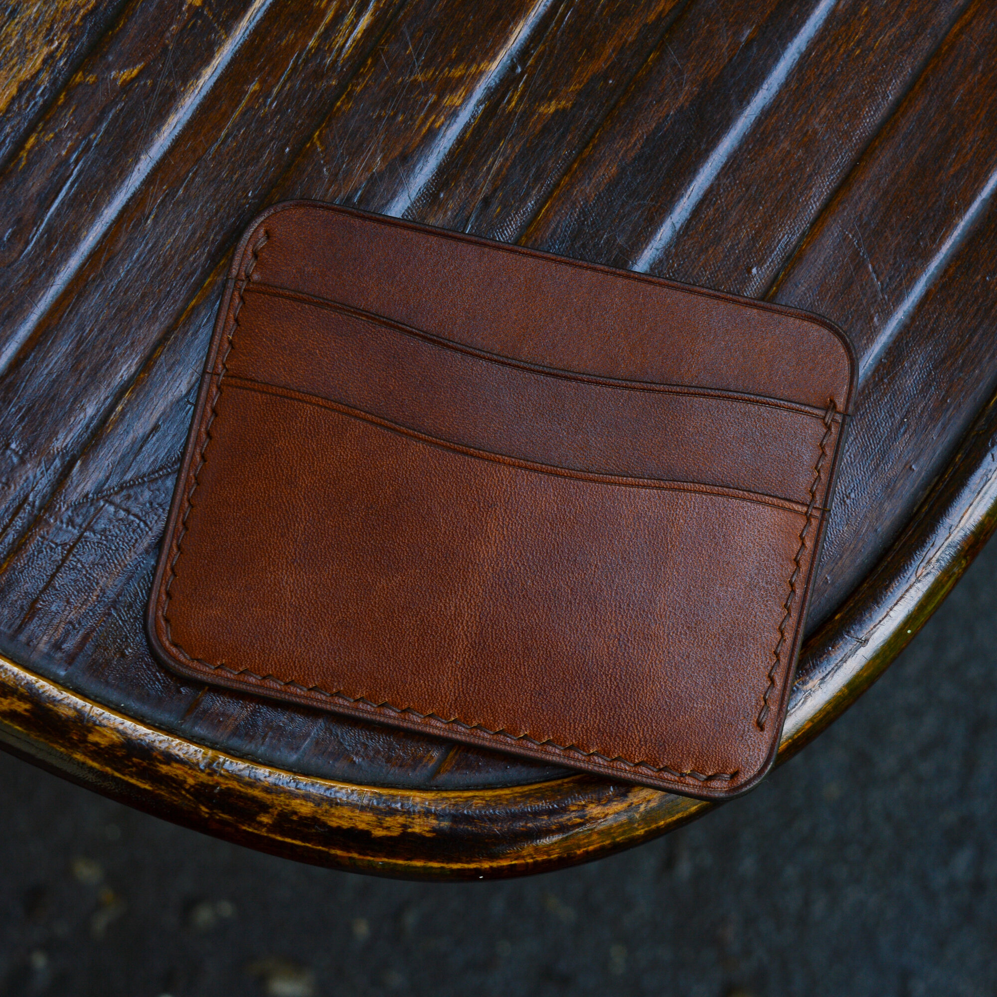Картхолдер из натуральной кожи ручной работы Янтарь / Кожаный мини кошелек для мужчин и женщин. Цвет коричневый