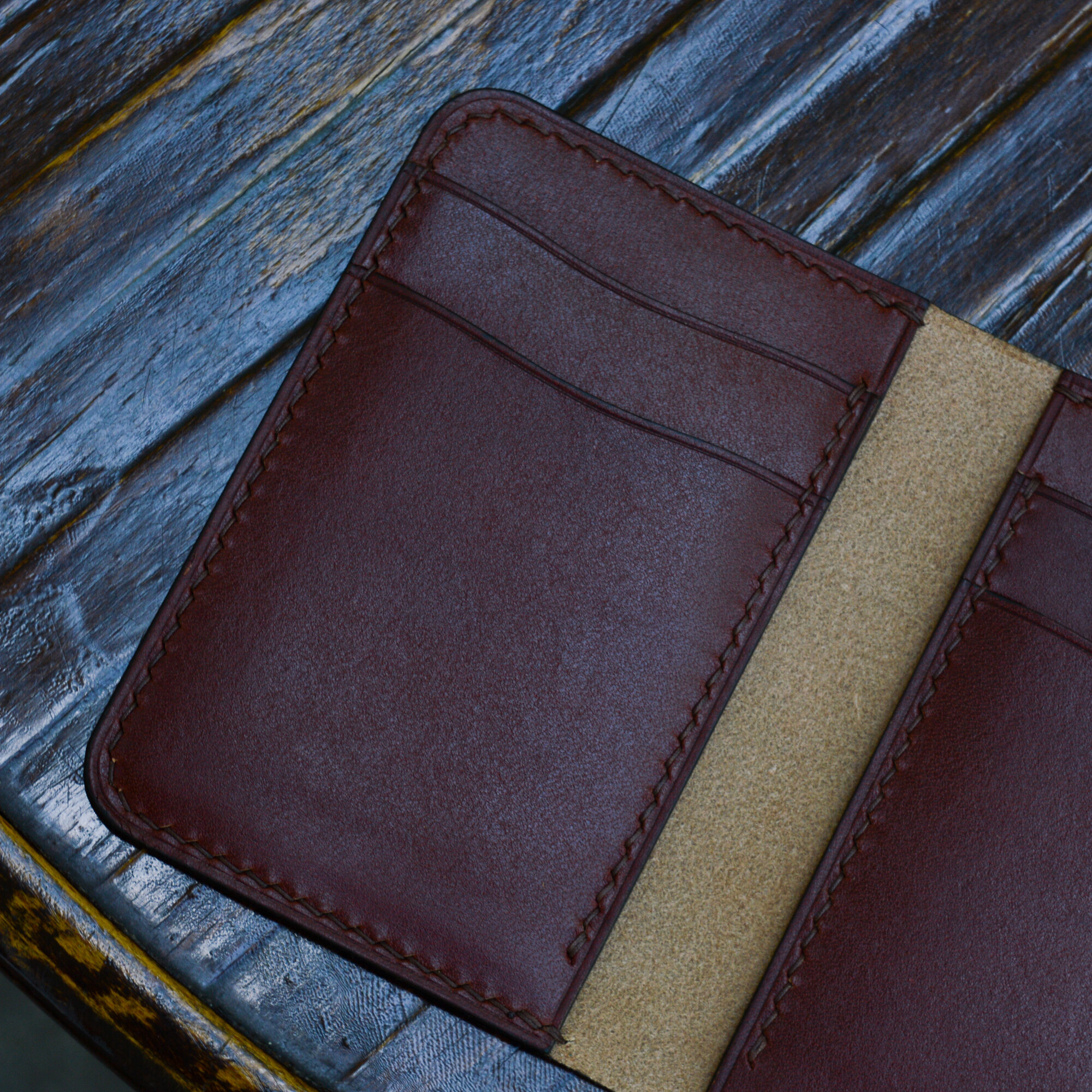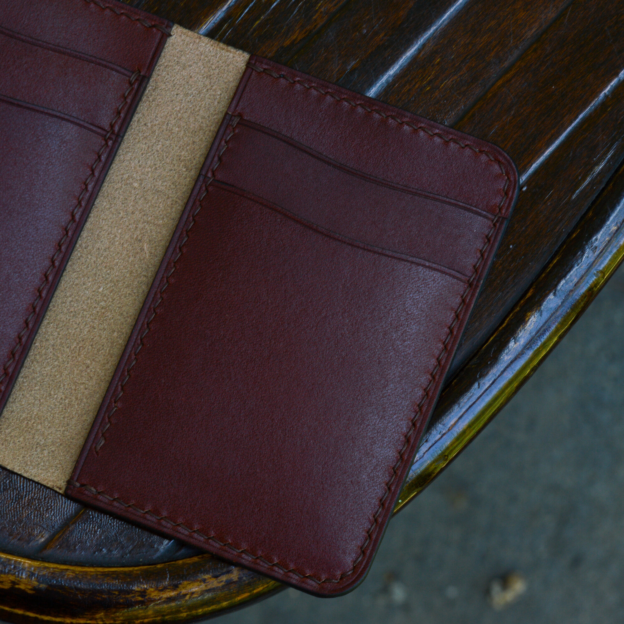 Купить Картхолдер из натуральной кожи ручной работы Bourbon / Кожаный мини кошелек, цвет бордовый