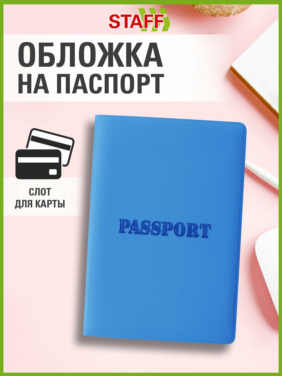 Купить Обложка на паспорт женская мужская, чехол для паспорта и документов, мягкий полиуретан, синяя, Staff Passport, 238405