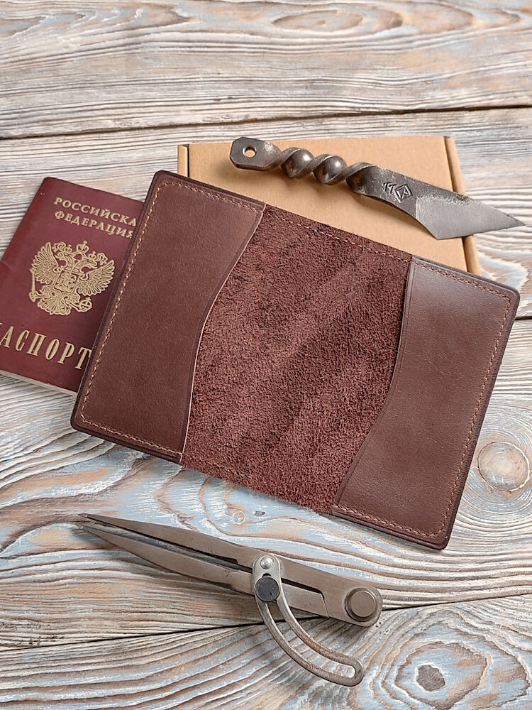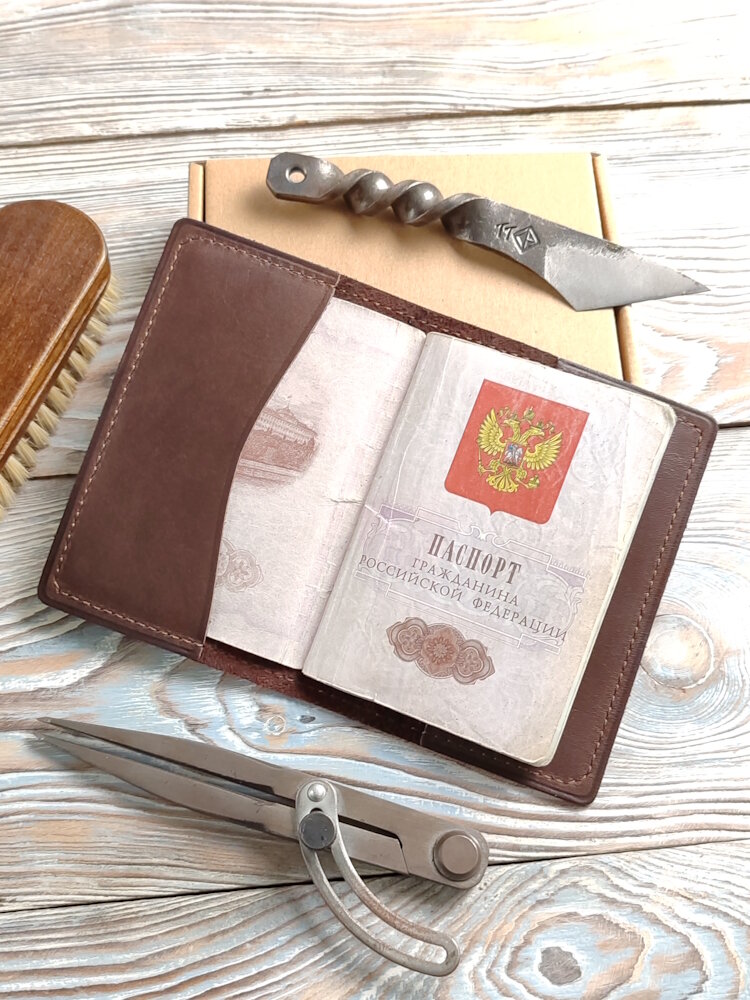 Обложка для паспорта из натуральной кожи ручной работы коричневая интересное:
