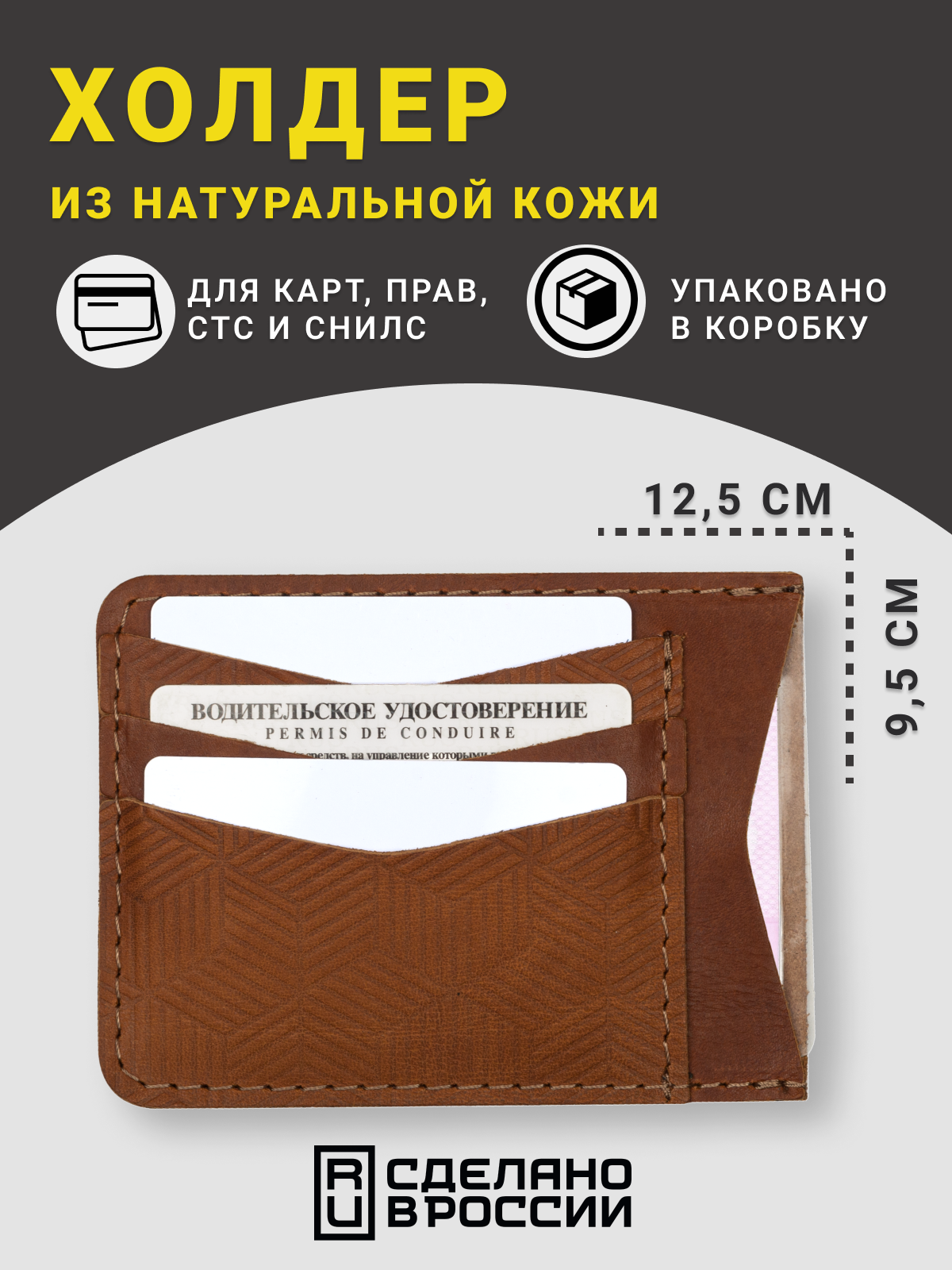Кожаный картхолдер для автодокументов и карт с тиснением, коричневый