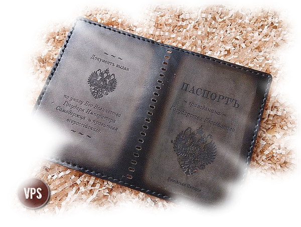 Обложка для паспорта "Российская Империя". Натуральная кожа. Ручная работа.