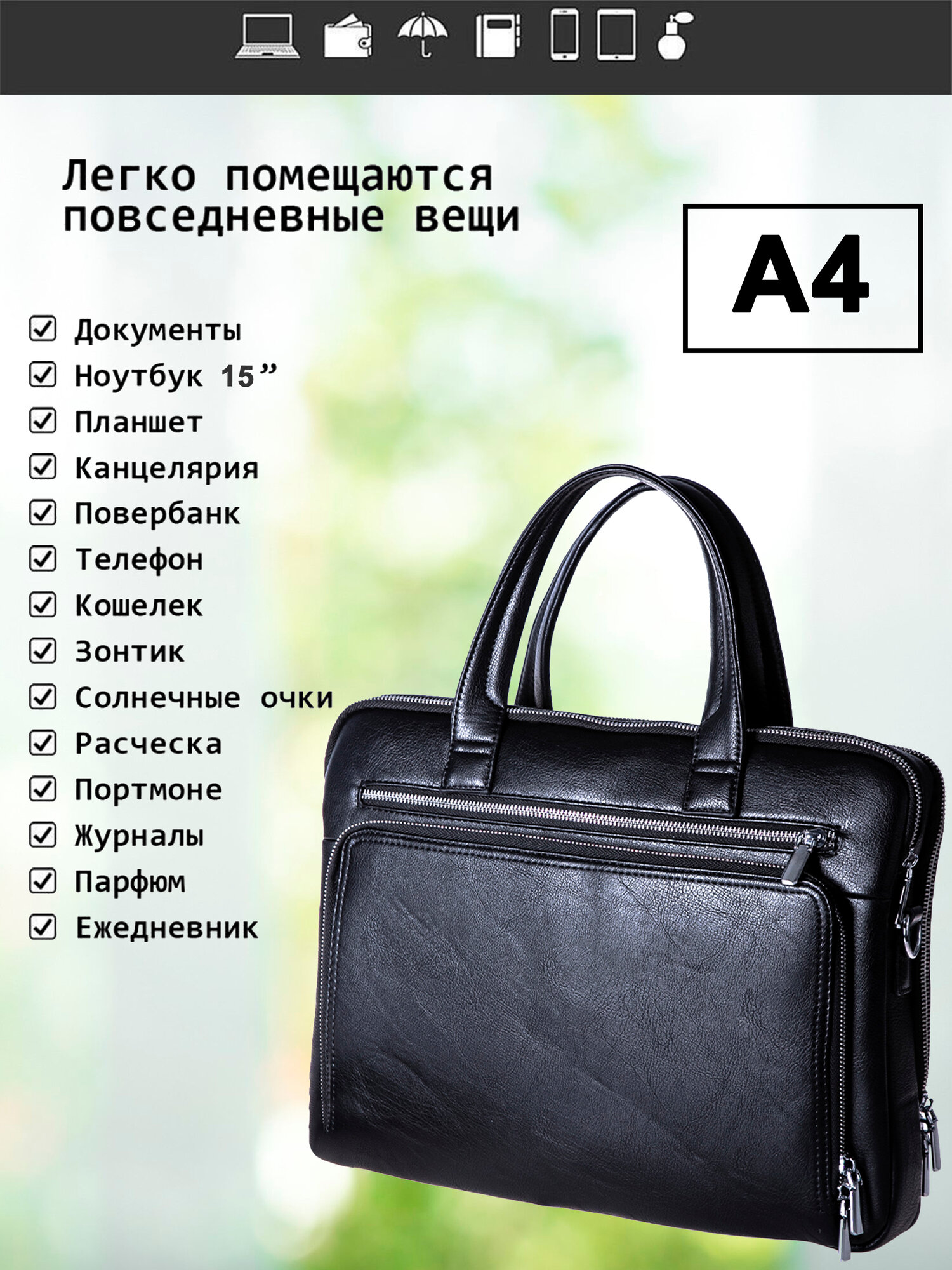 Портфель мужской, сумка для документов, сумка А4 из экокожи