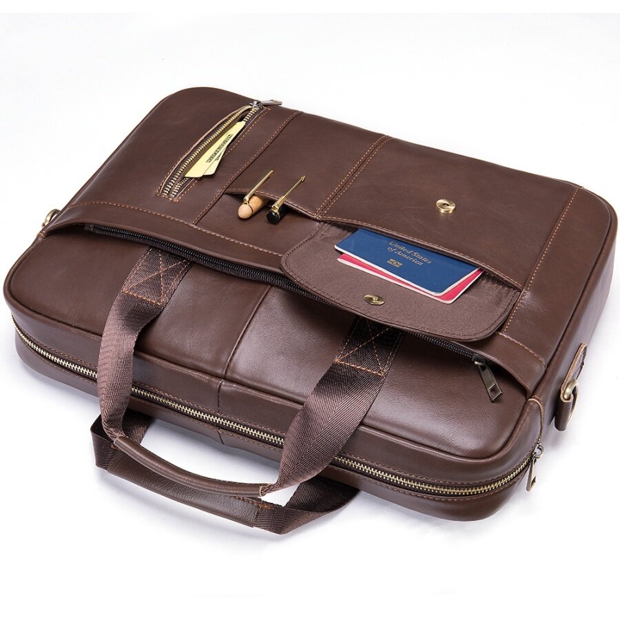 Портфель из натуральной кожи кофейный, для ноутбука до 14", Marrant интересное: