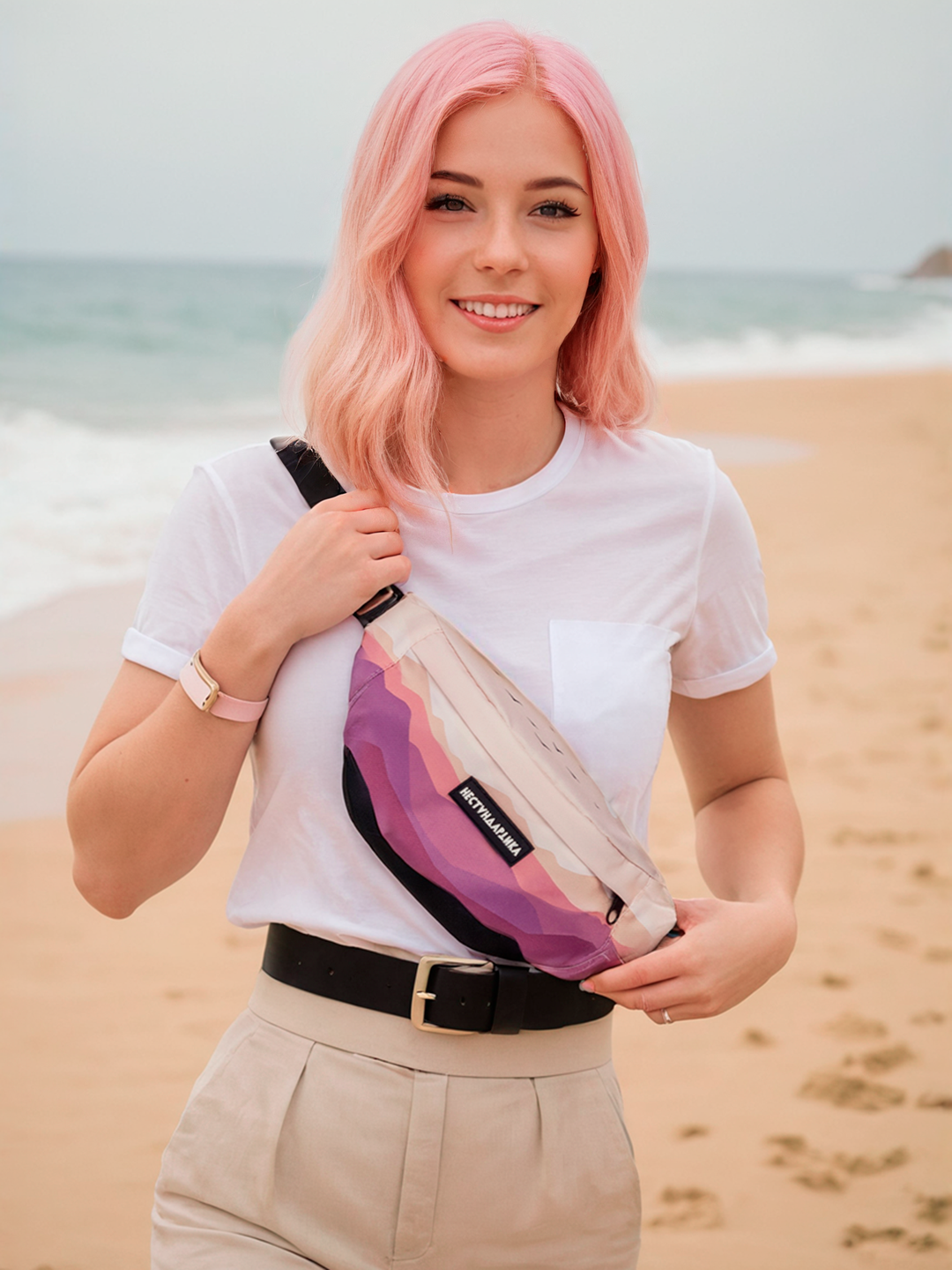 Сумка поясная НЕСТАНДАРТИКА, фактура гладкая, безмятежность