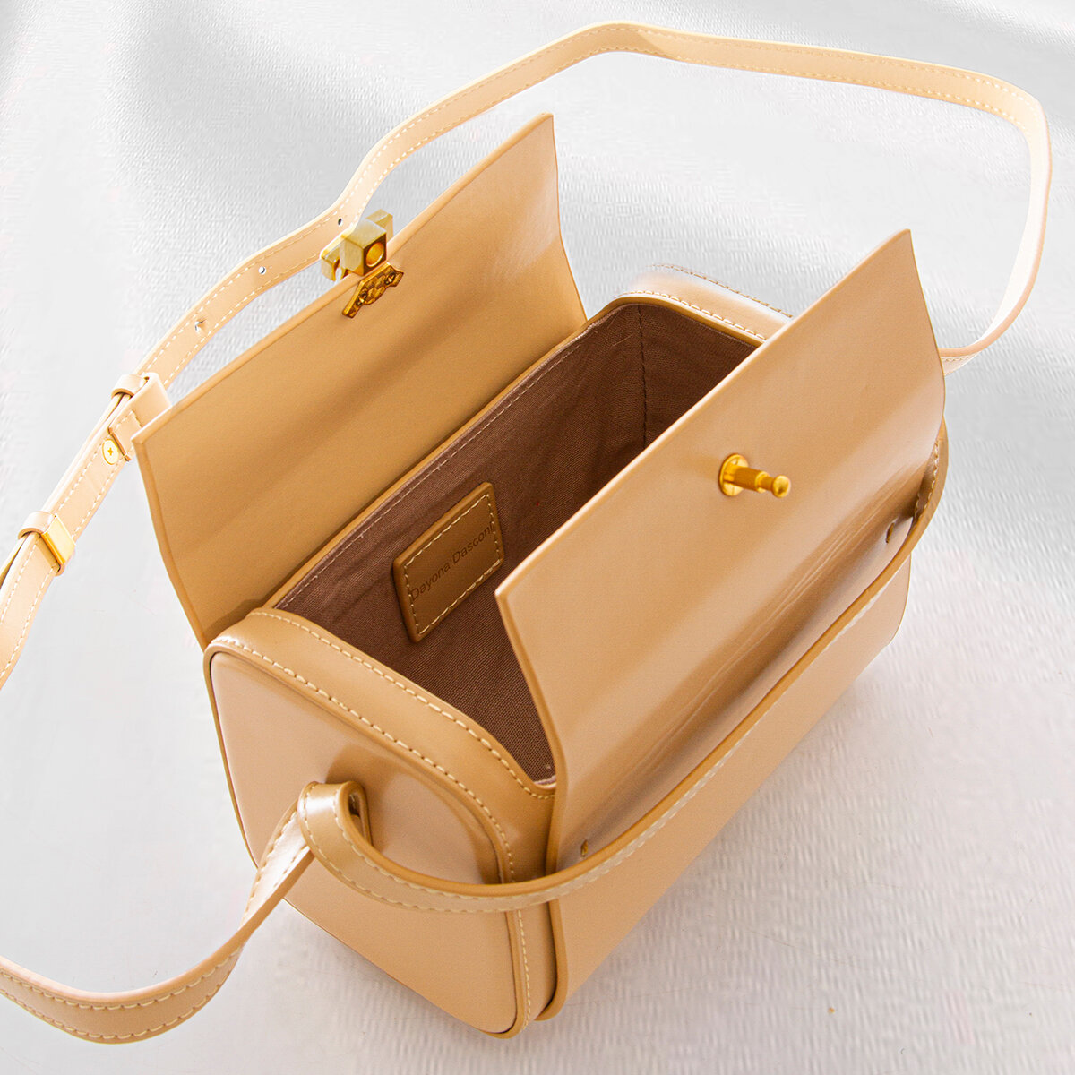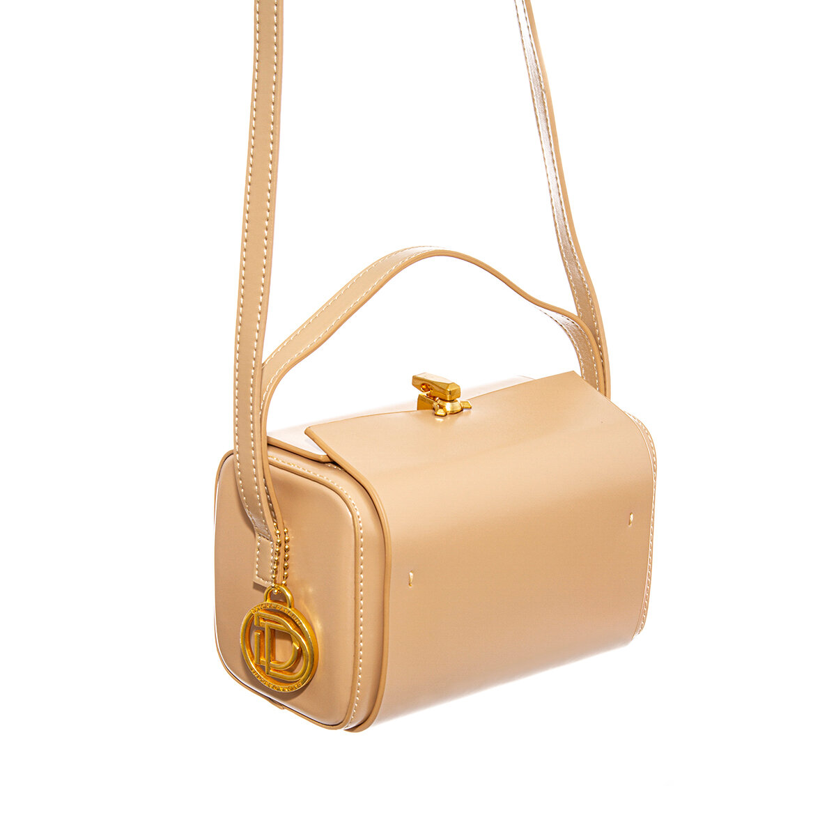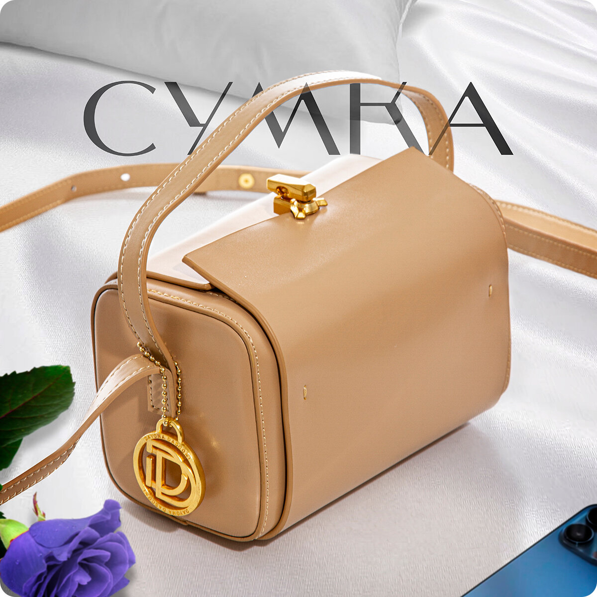 Сумка женская боулер (бежевая) Dayona Dasconi натуральная кожа повседневная с коротким и длинным ремешком интересное:
