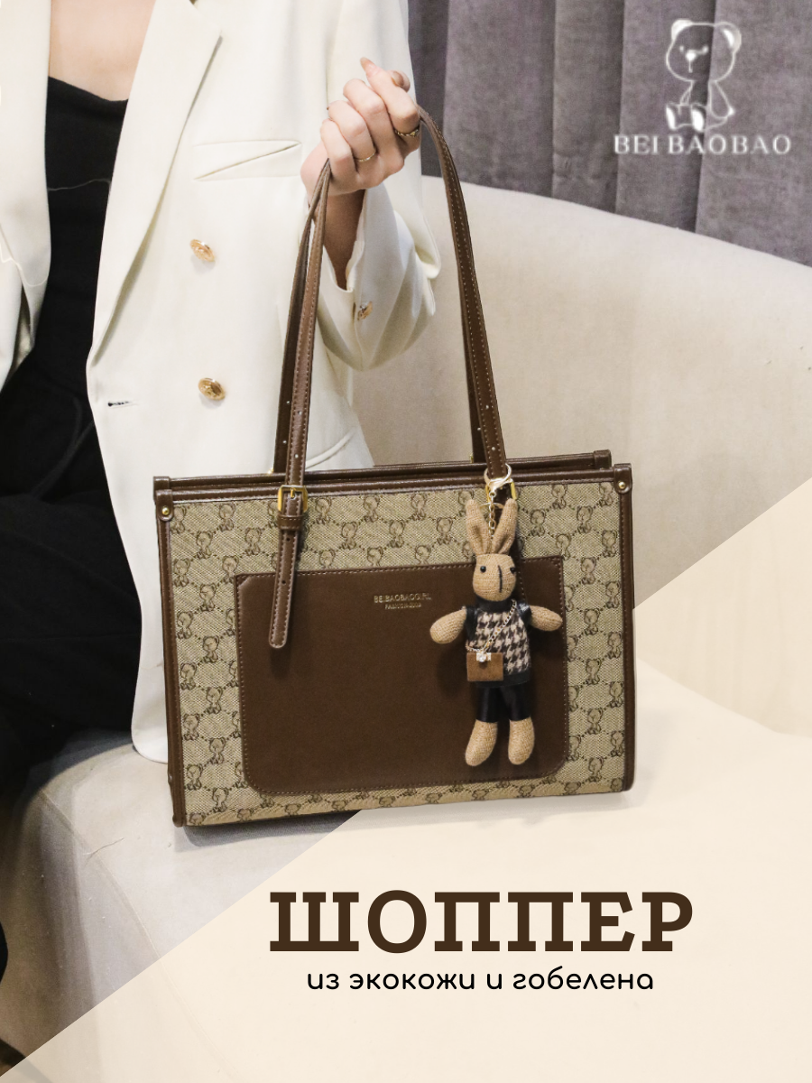 СохранитьСумка женская Beibaobao шоппер, экокожа, гобелен, размер L, цвет бежевый/коричневый интересное: