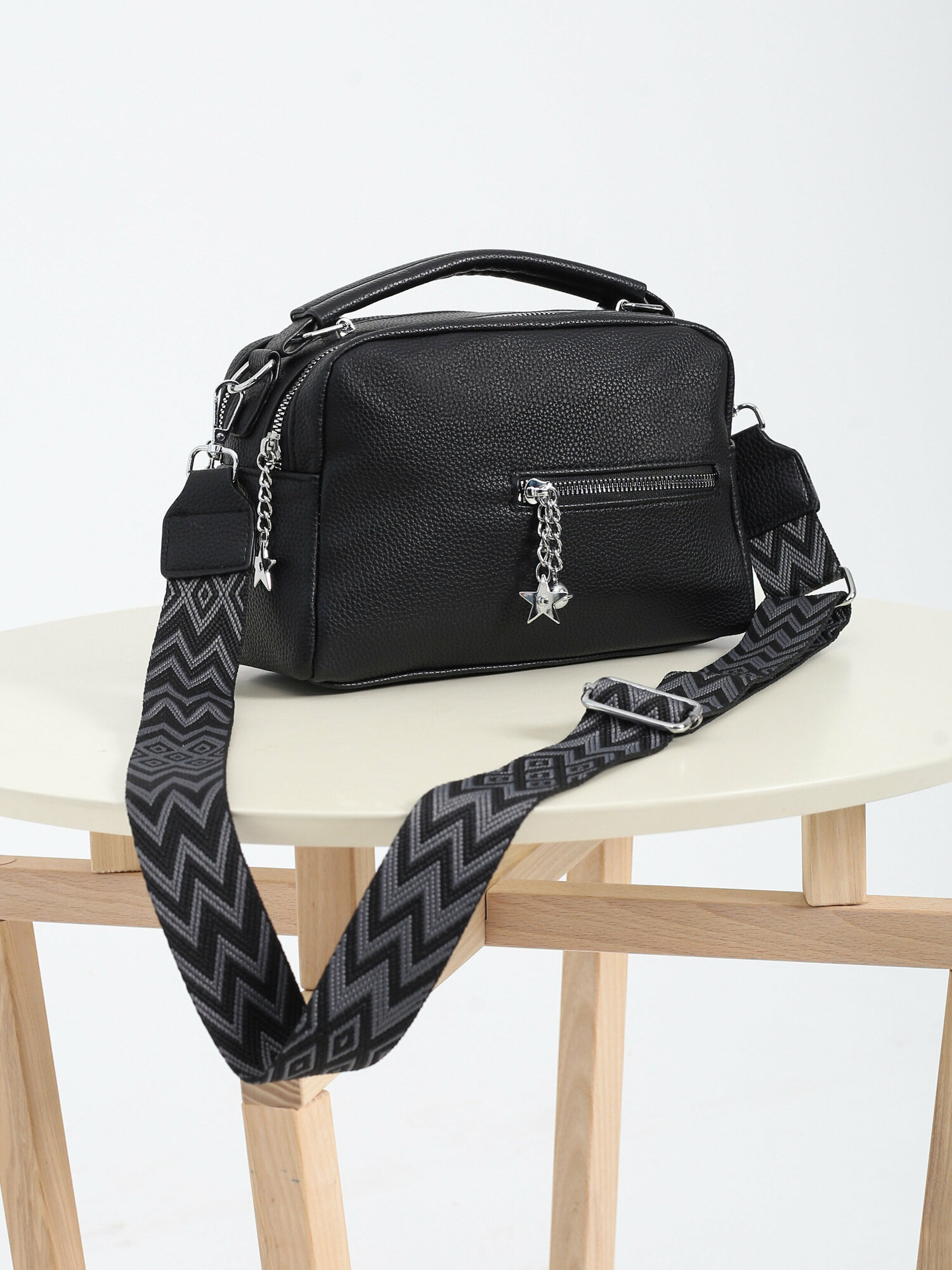 Сумка кросс-боди BORSIKA, фактура гладкая, черный