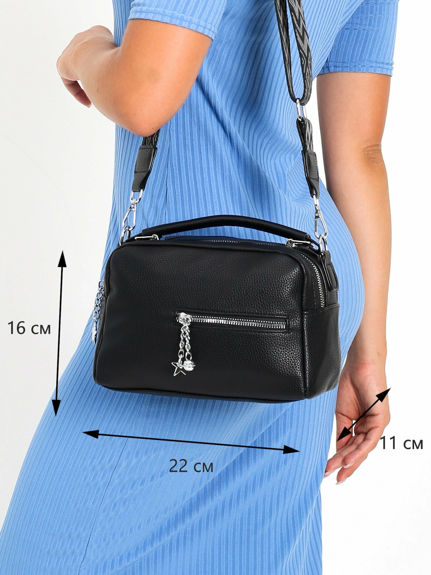 Сумка женская через плечо кросс-боди Borsika черная маленькая интересное: