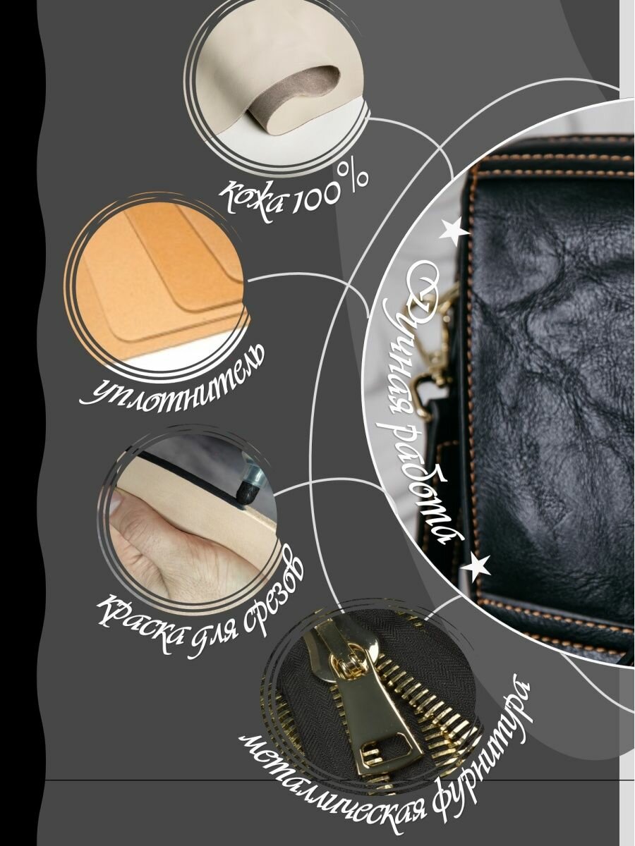 | Особенности модели | внешний карман / внутренний карман / плечевой ремень / регулируемый ремень / ручная работа |