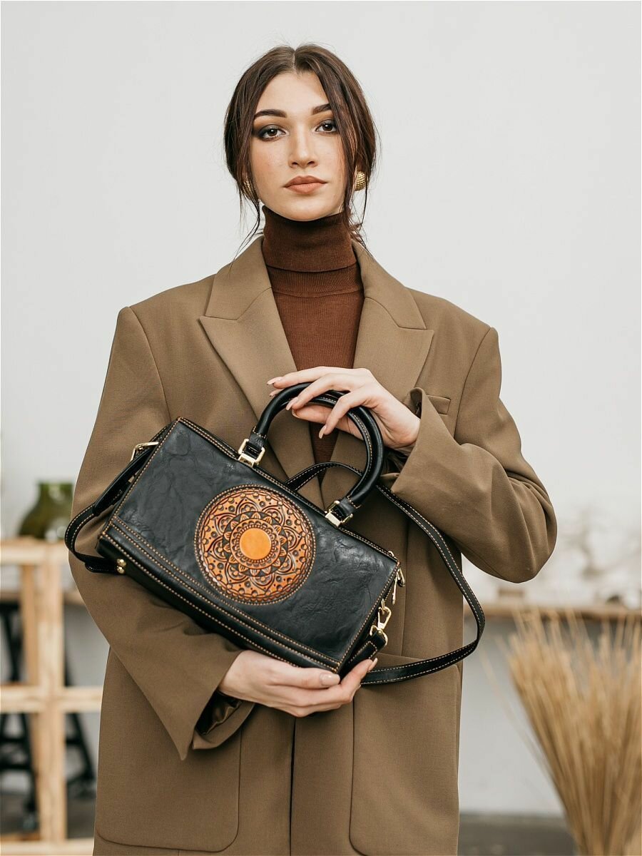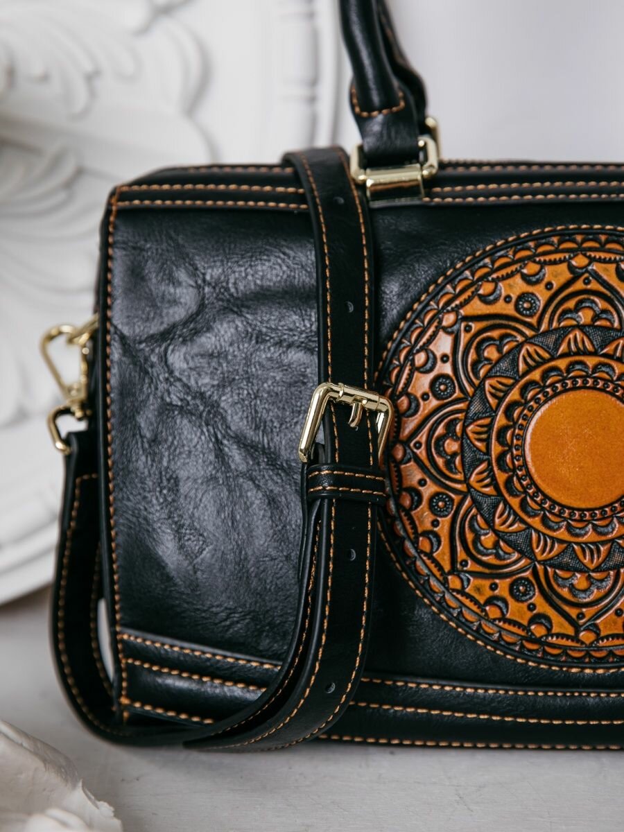 Сумка черная винтажная дамская ручной работы из кожи интересное: