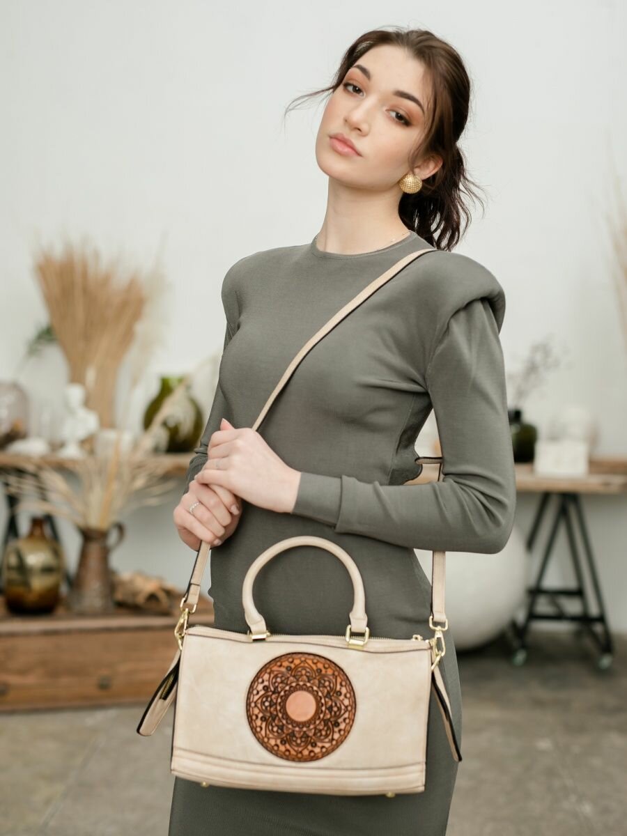 Сумка бежевая винтажная дамская ручной работы из кожи интересное:
