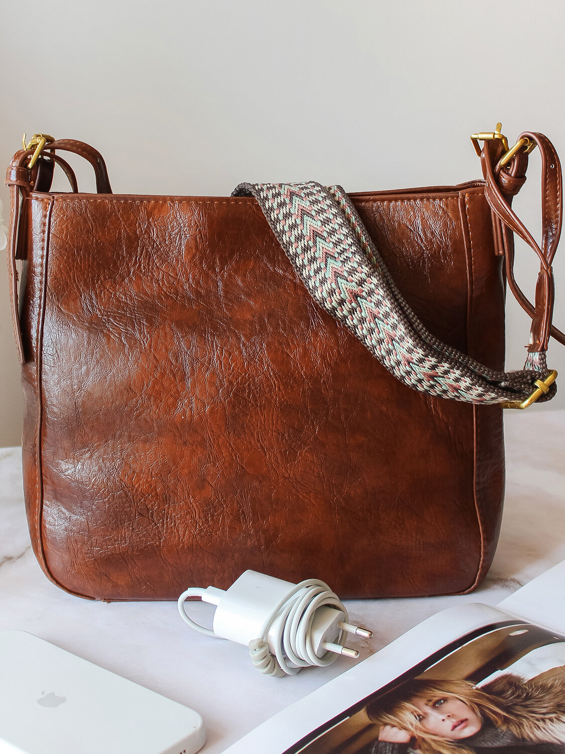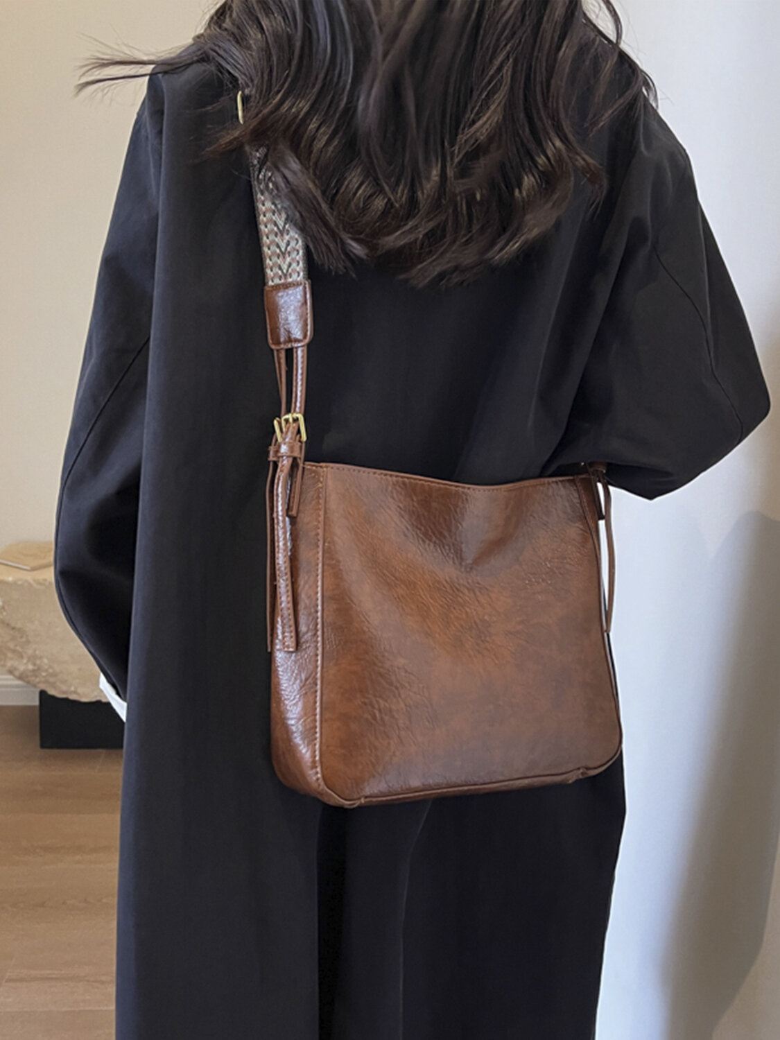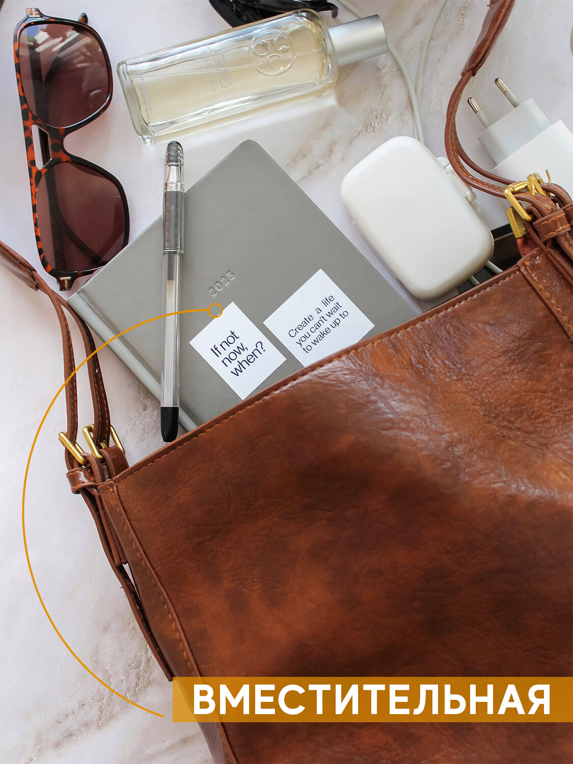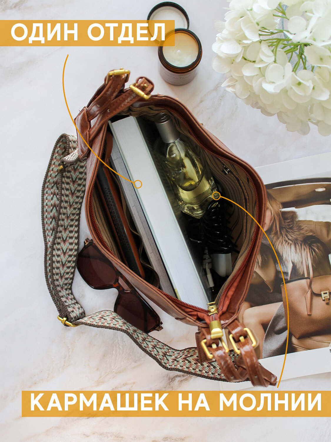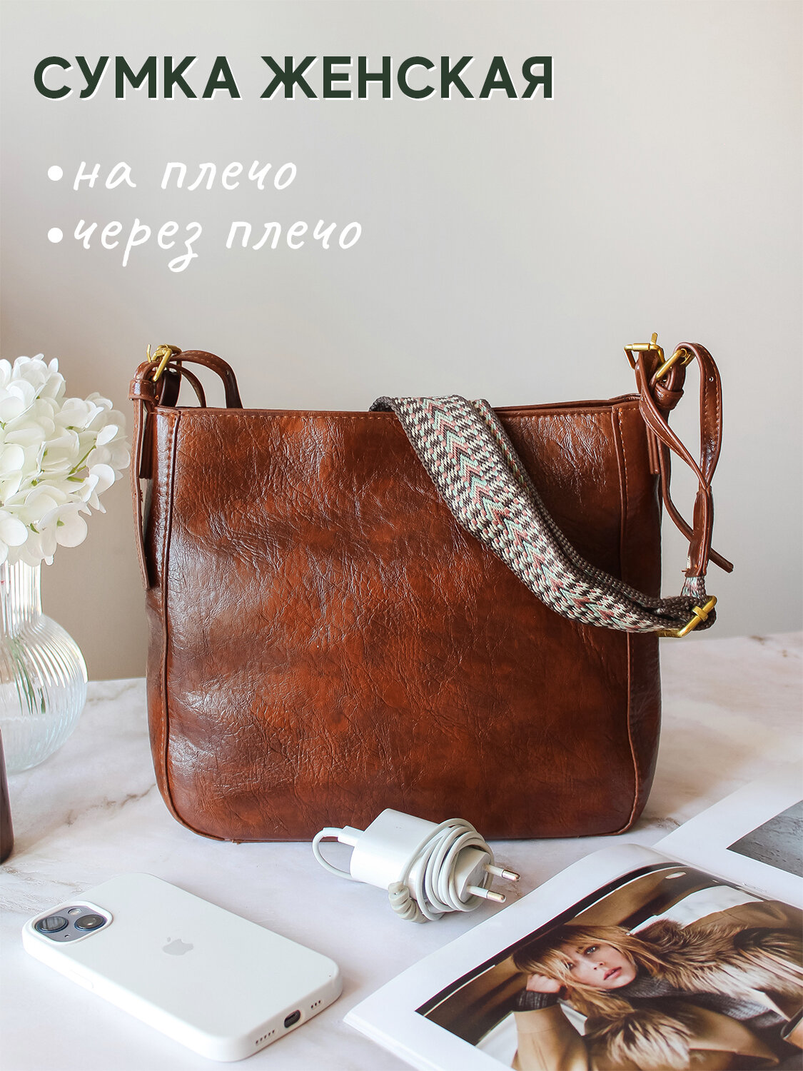 Сумка женская с широким ремнем, коричневая интересное: