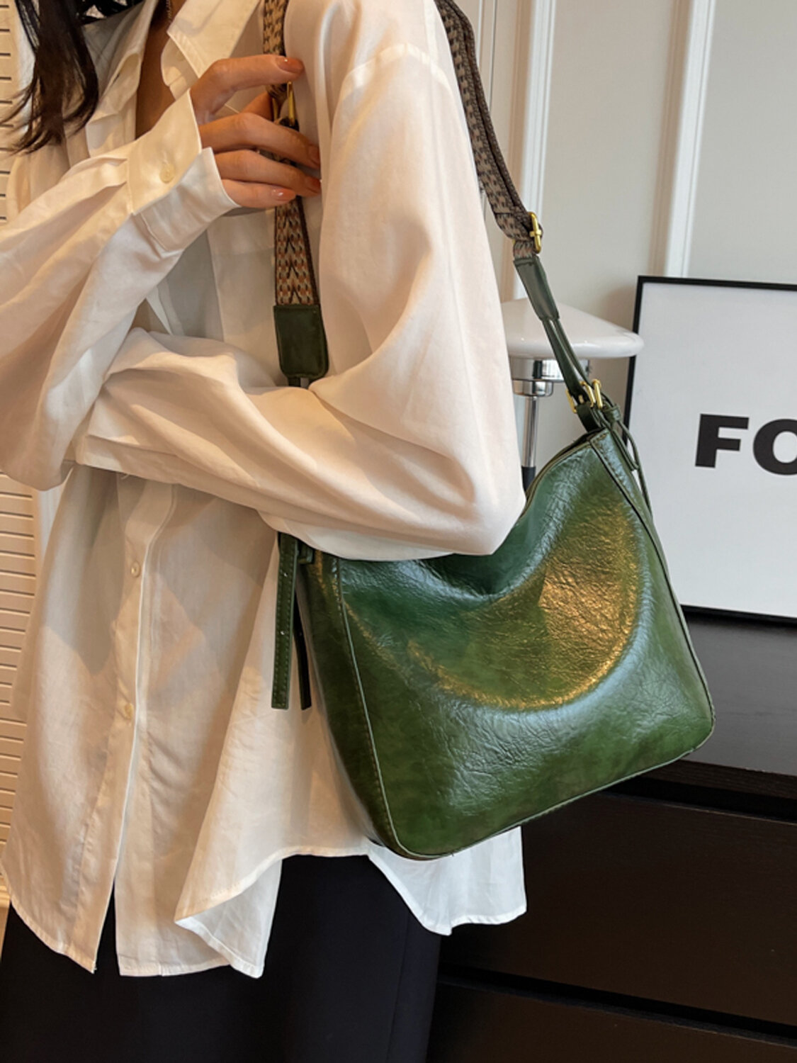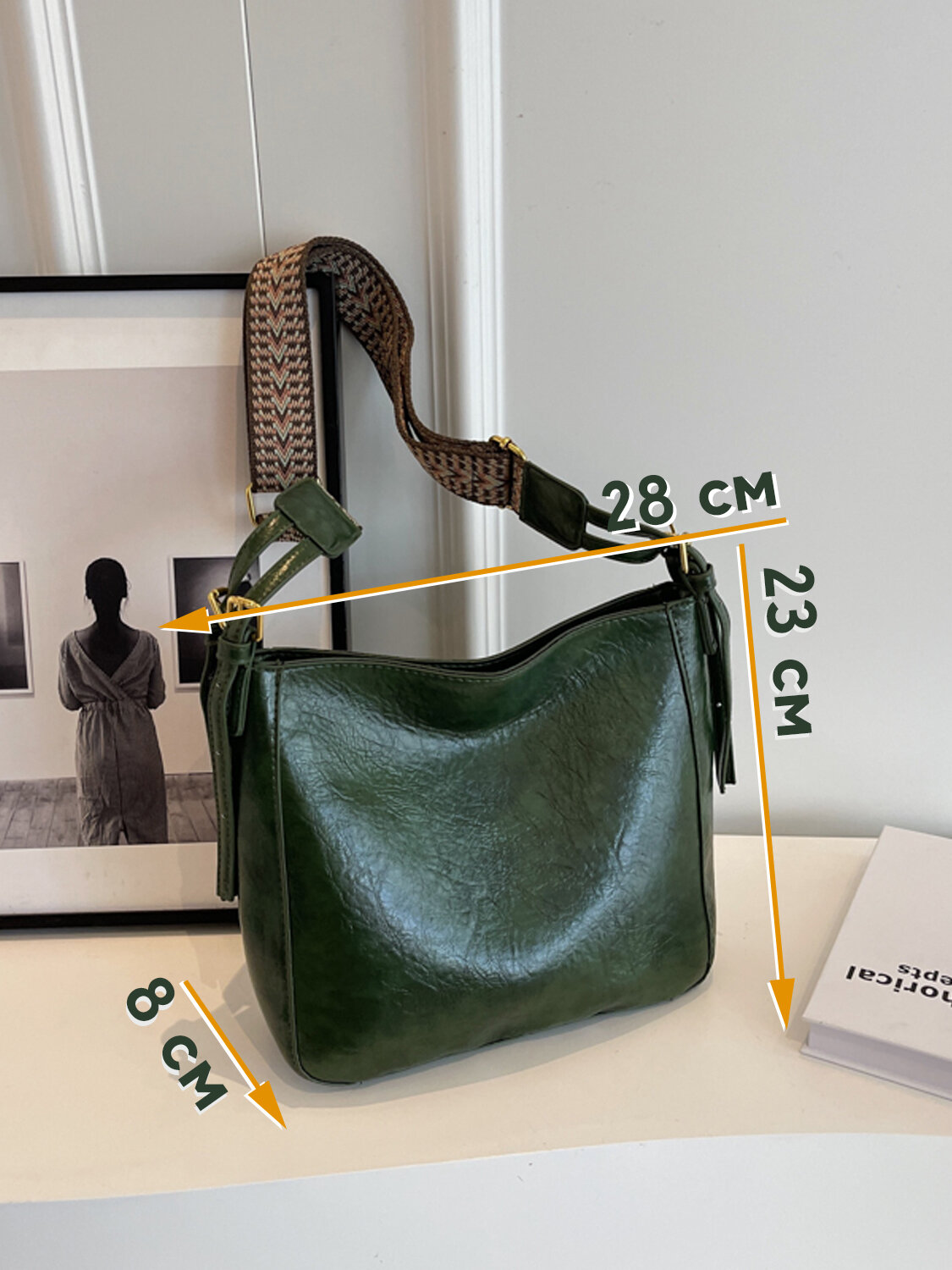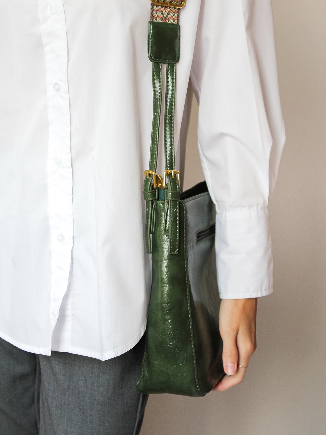 Купить Сумка женская с широким ремнем, зеленая (изумруд)