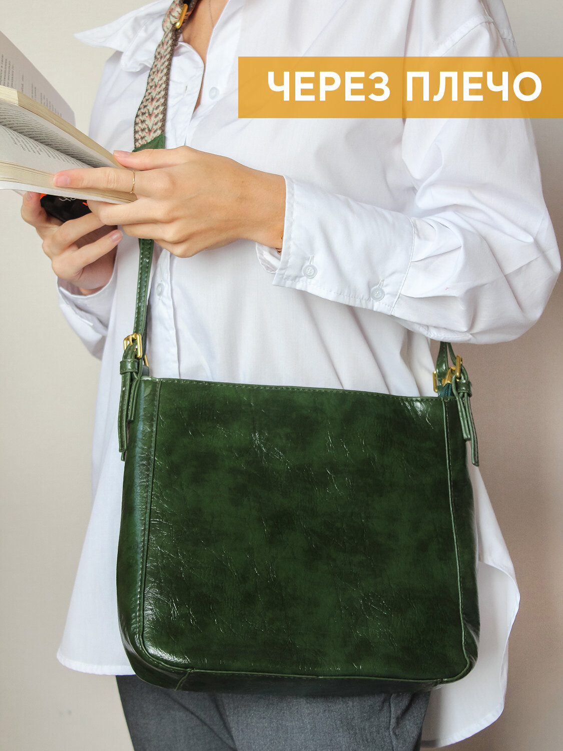 Сумка женская с широким ремнем, зеленая (изумруд) интересное: