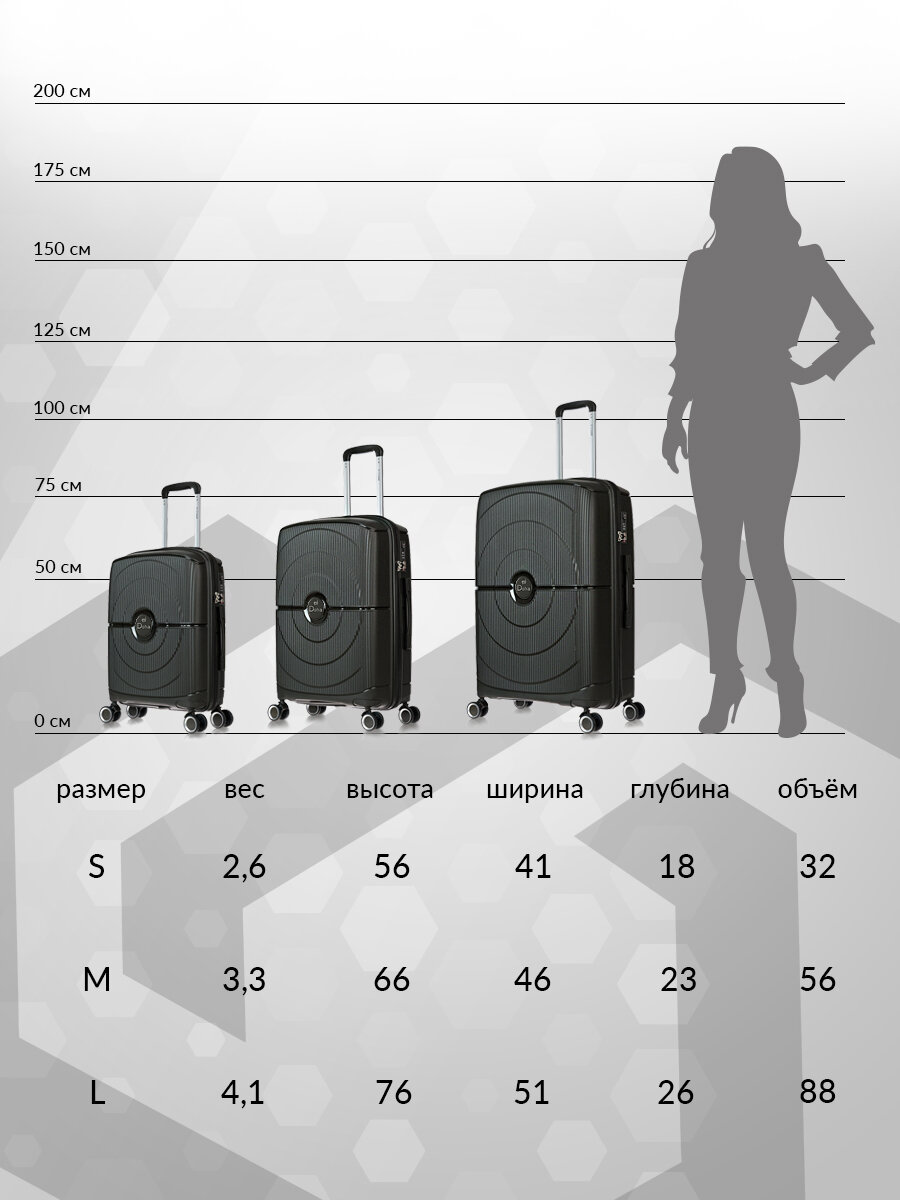 Чемодан на колесах M средний, зеленый - Чемодан полипропилен, семейный Lcase