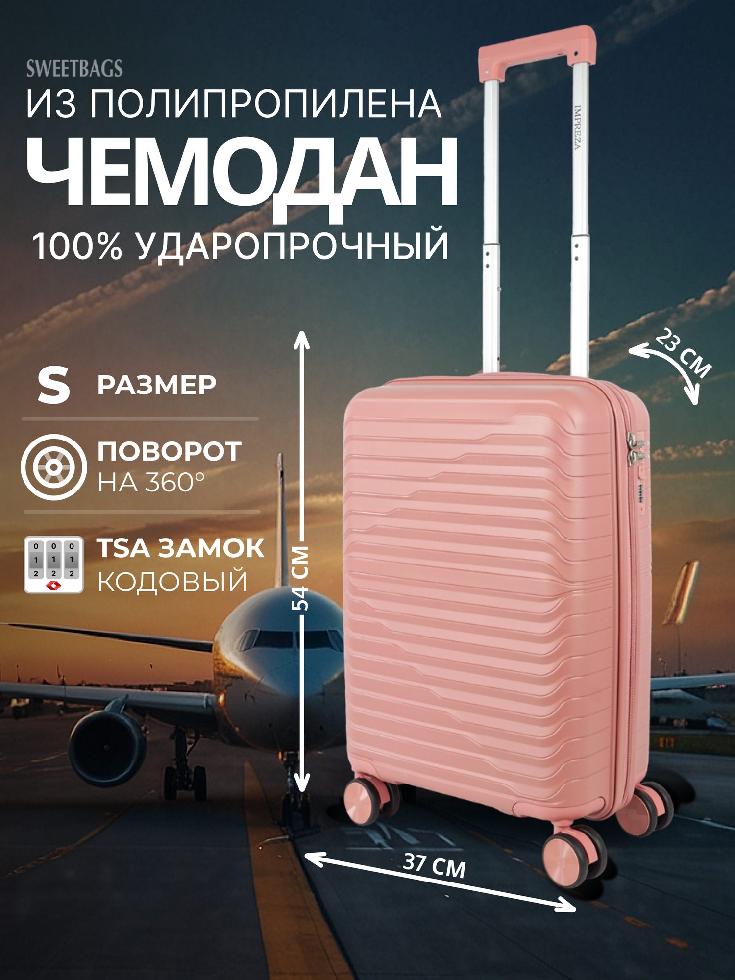 СохранитьЧемодан Sweetbags маленький (ручная кладь) из полипропилена с TSA замком (Импульс) чайная роза S интересное: