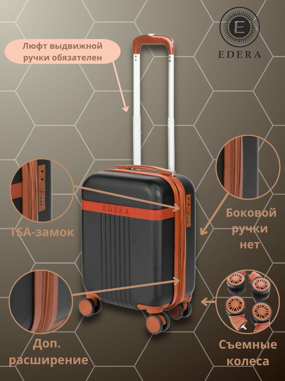Чемодан унисекс Edera 826-18" S, ABS пластик, ручная кладь, увеличение объема интересное: