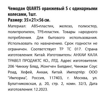 Чемодан Sirocco Quarts оранжевый ABS 4K, 35 x 21 x 56см интересное: