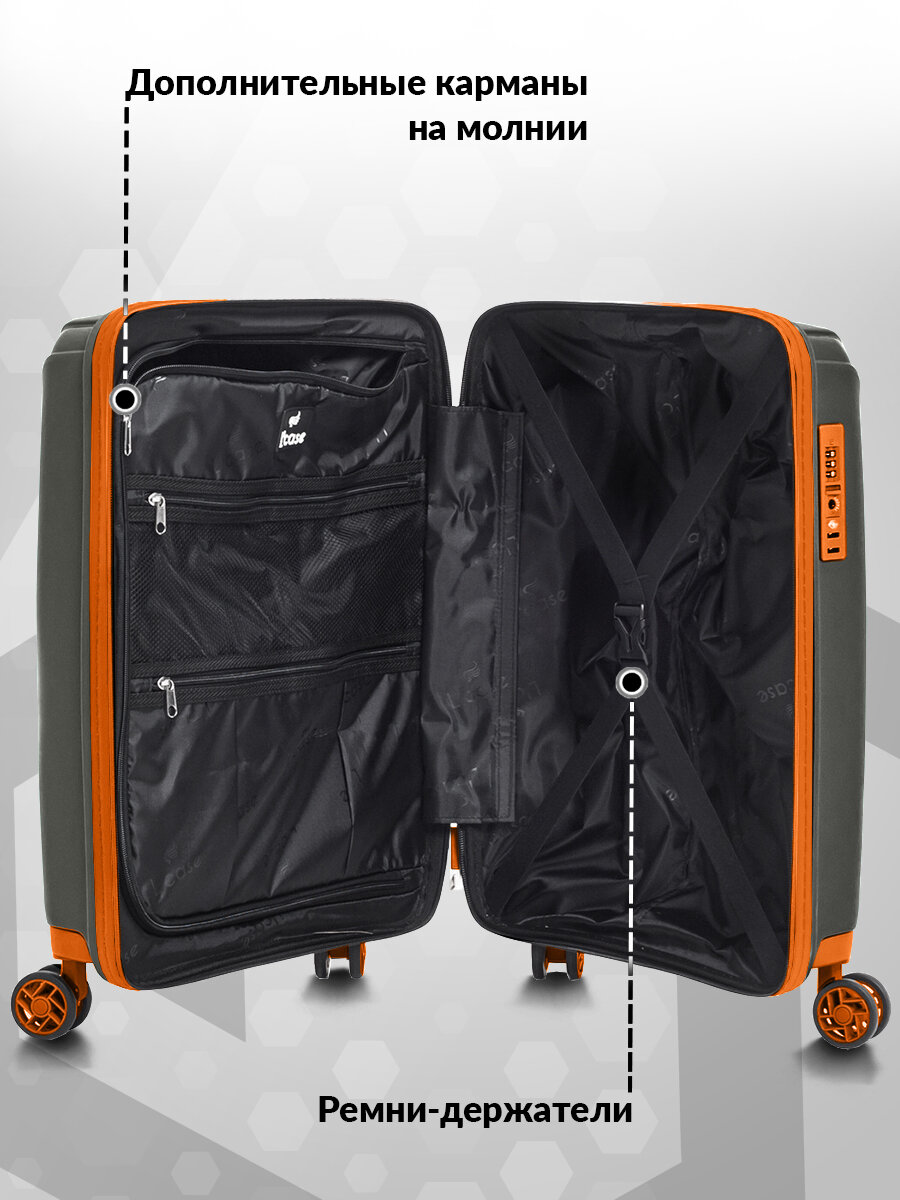 Чемодан на колесах M средний, оранжевый - Чемодан полипропилен, семейный Lcase