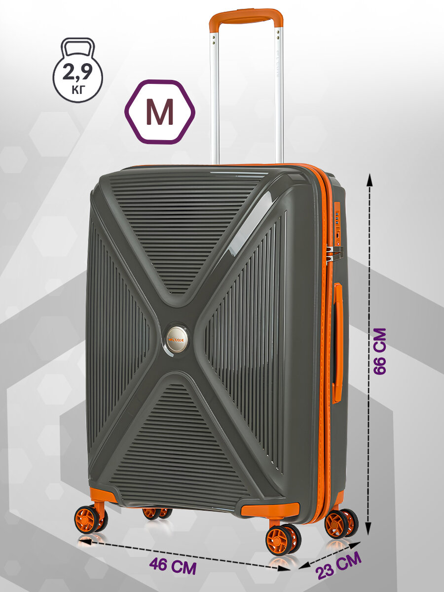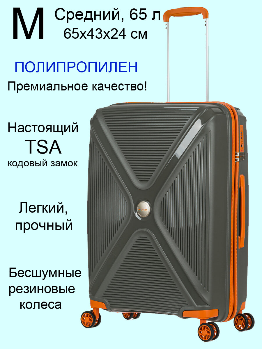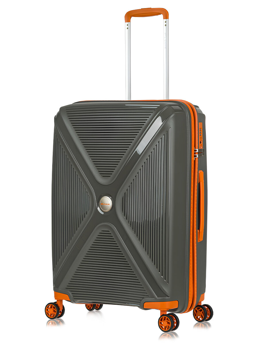Чемодан на колесах M средний, оранжевый - Чемодан полипропилен, семейный Lcase