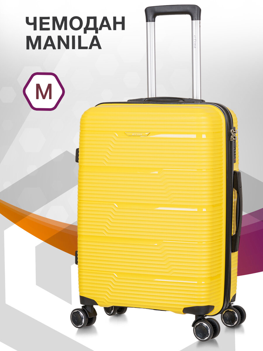 Чемодан на колесах M средний, желтый - Чемодан полипропилен, семейный Lcase интересное:
