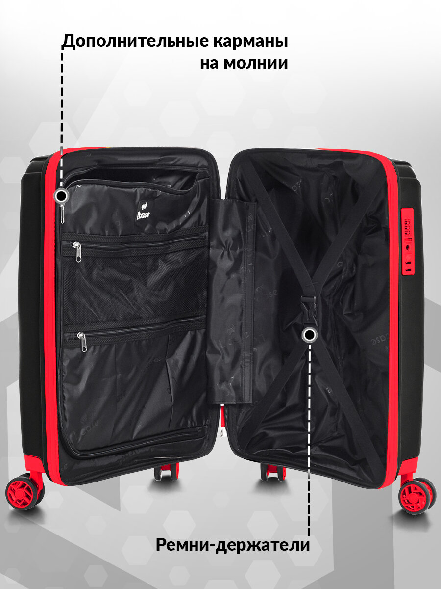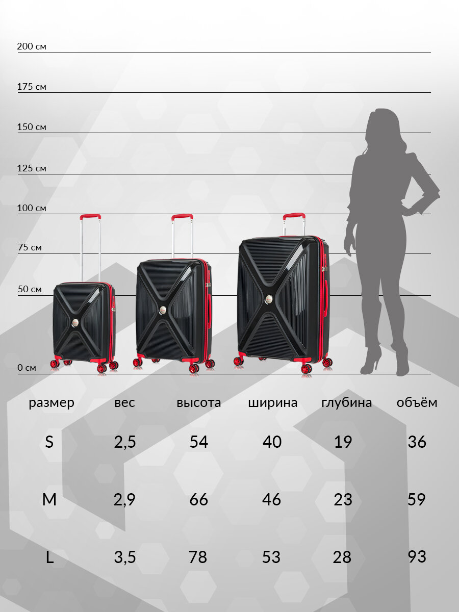 Чемодан на колесах M средний, черный - Чемодан полипропилен, семейный Lcase