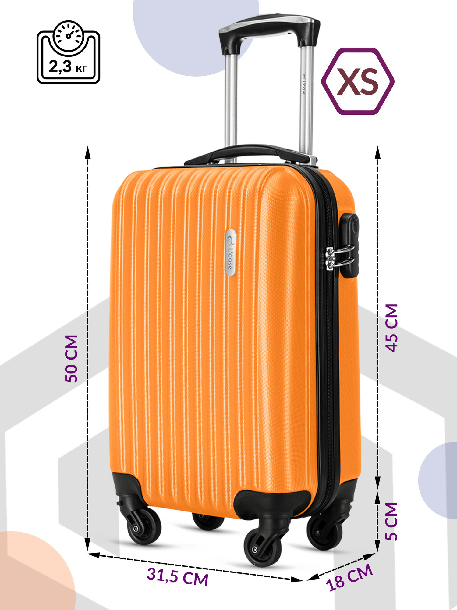 Чемодан на колесах ручная кладь Lcase Krabi, Оранжевый. Маленький S, АВС пластик. Дорожный чемодан на колесиках для путешествий и поездок.