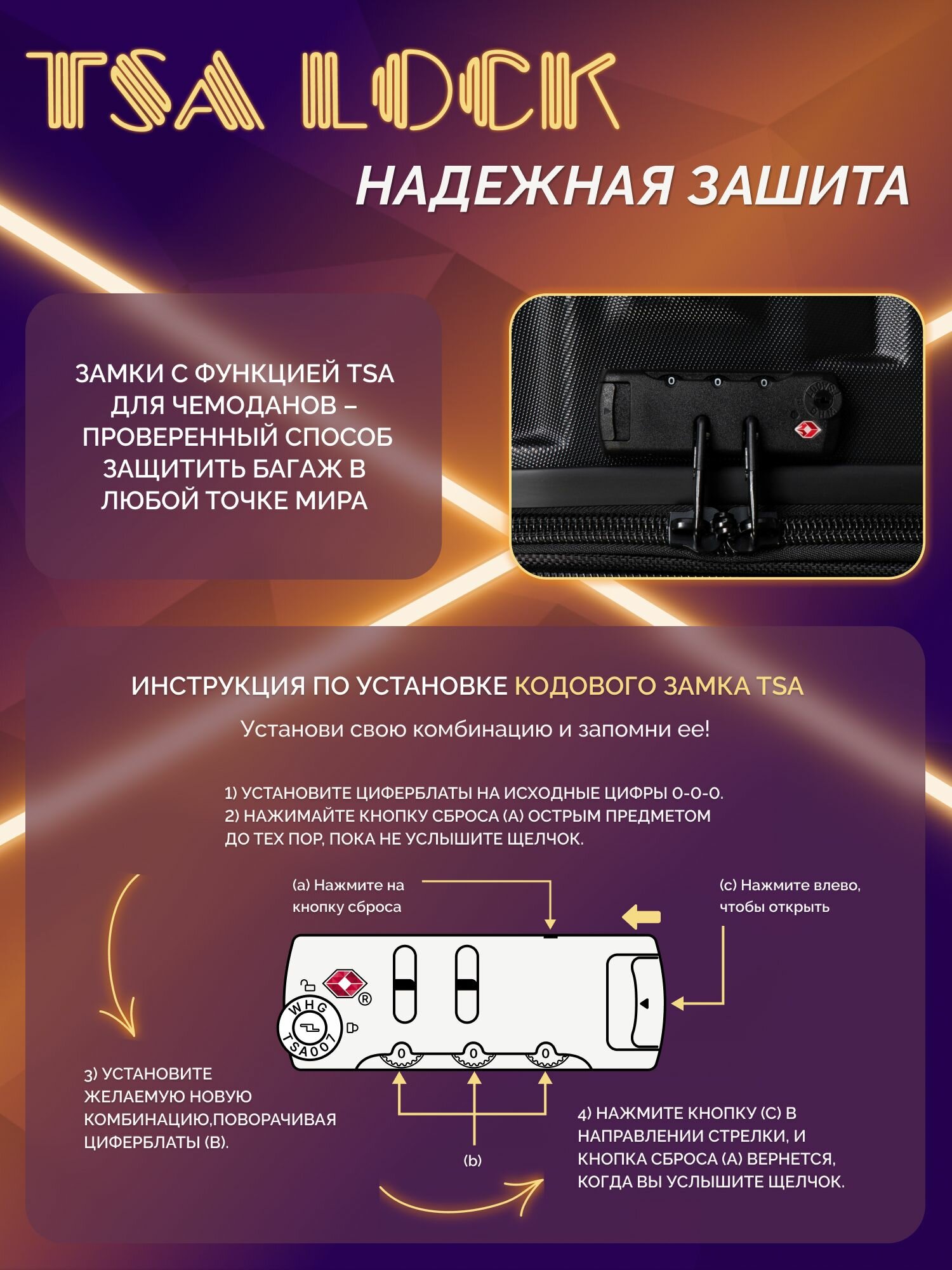 | Замок | встроенный кодовый, с функцией TSA |