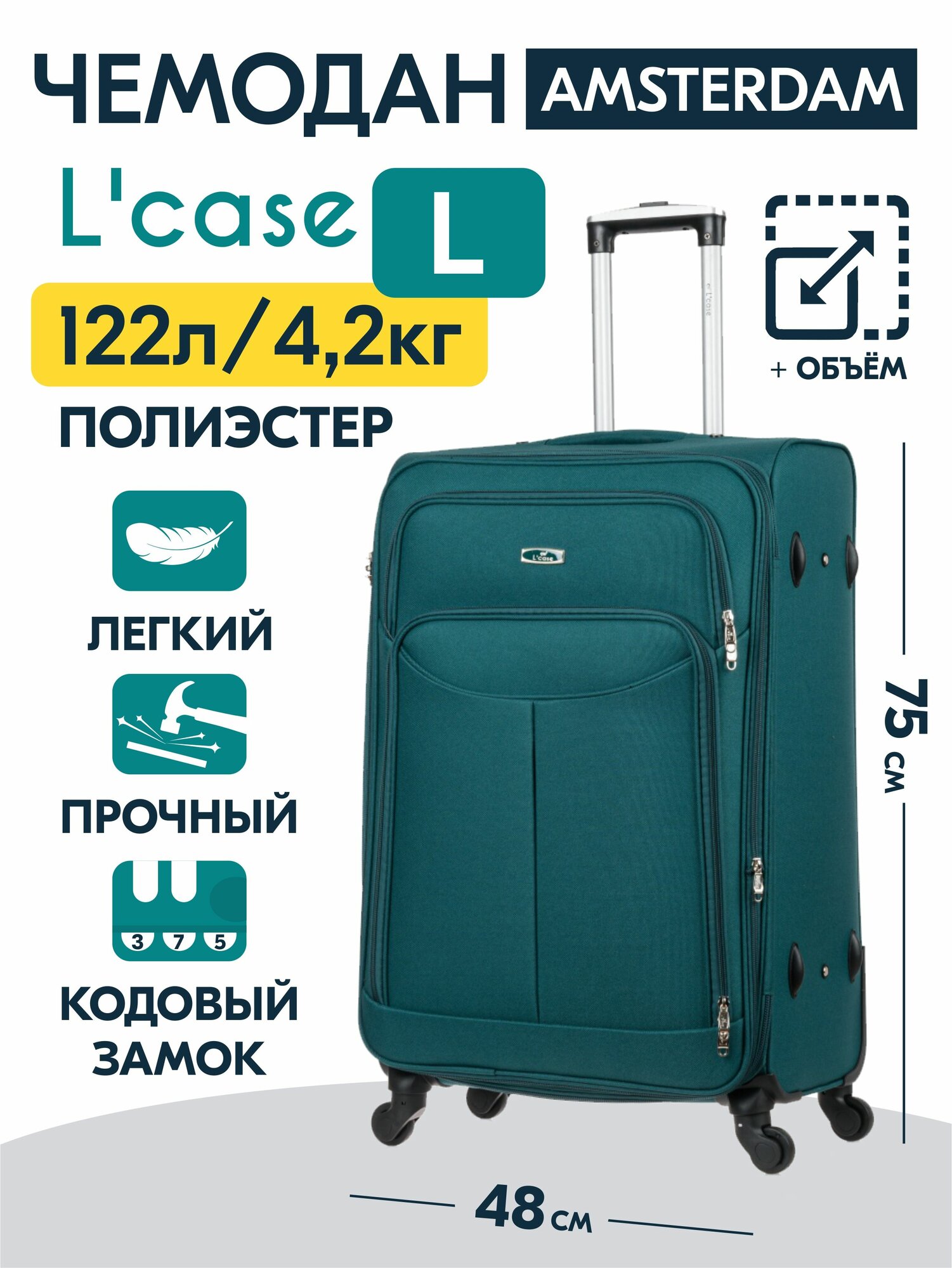 Купить Чемодан на колесах Lcase AMSTERDAM, Темно-зеленый. Большой размер L, тканевый, 75 см, 115 л. Дорожный чемодан на колесиках для путешествий и поездок.