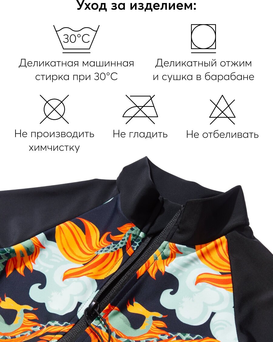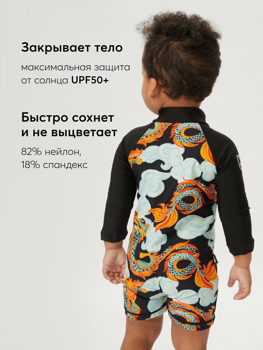 50654, Детский купальник слитный Happy Baby с защитой от солнца, UPF 50+, солнцезащитный, черный с драконами, рост 68-74 интересное: